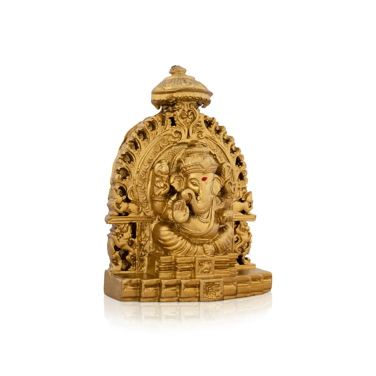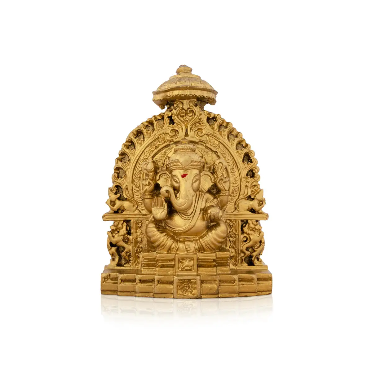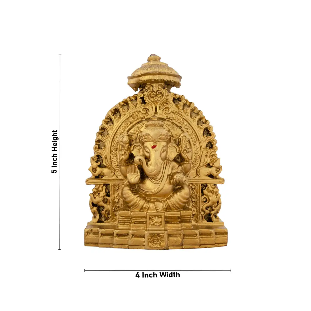 Ganesh Murti Sitting On Simhasan - 5 x 4 Inches | Resin Statue/ Gold Polish Vinayaka Idol for Pooja/ 320 Gms
