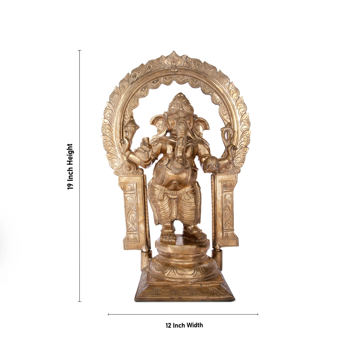 Ganesh Murti with Arch - 19 x 12 Inches | Panchaloha Idol/ Ganpati Murti/ Vinayaka Idol for Pooja/ 17.57 Kgs