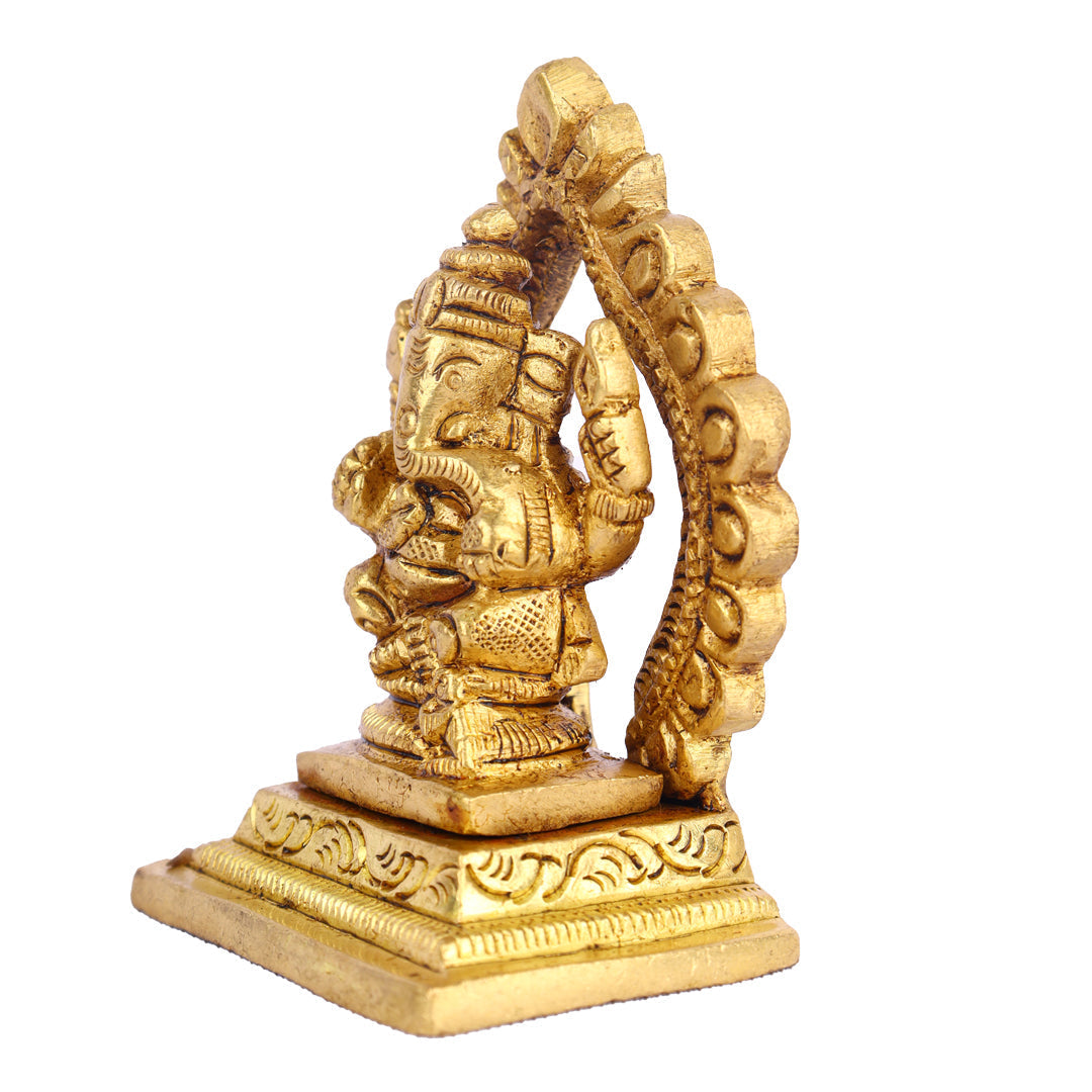 Ganesh with Arch Murti - 2.5 Inches | Antique Brass Statue/ Vinayagar Statue/ Ganesha Idol for Pooja