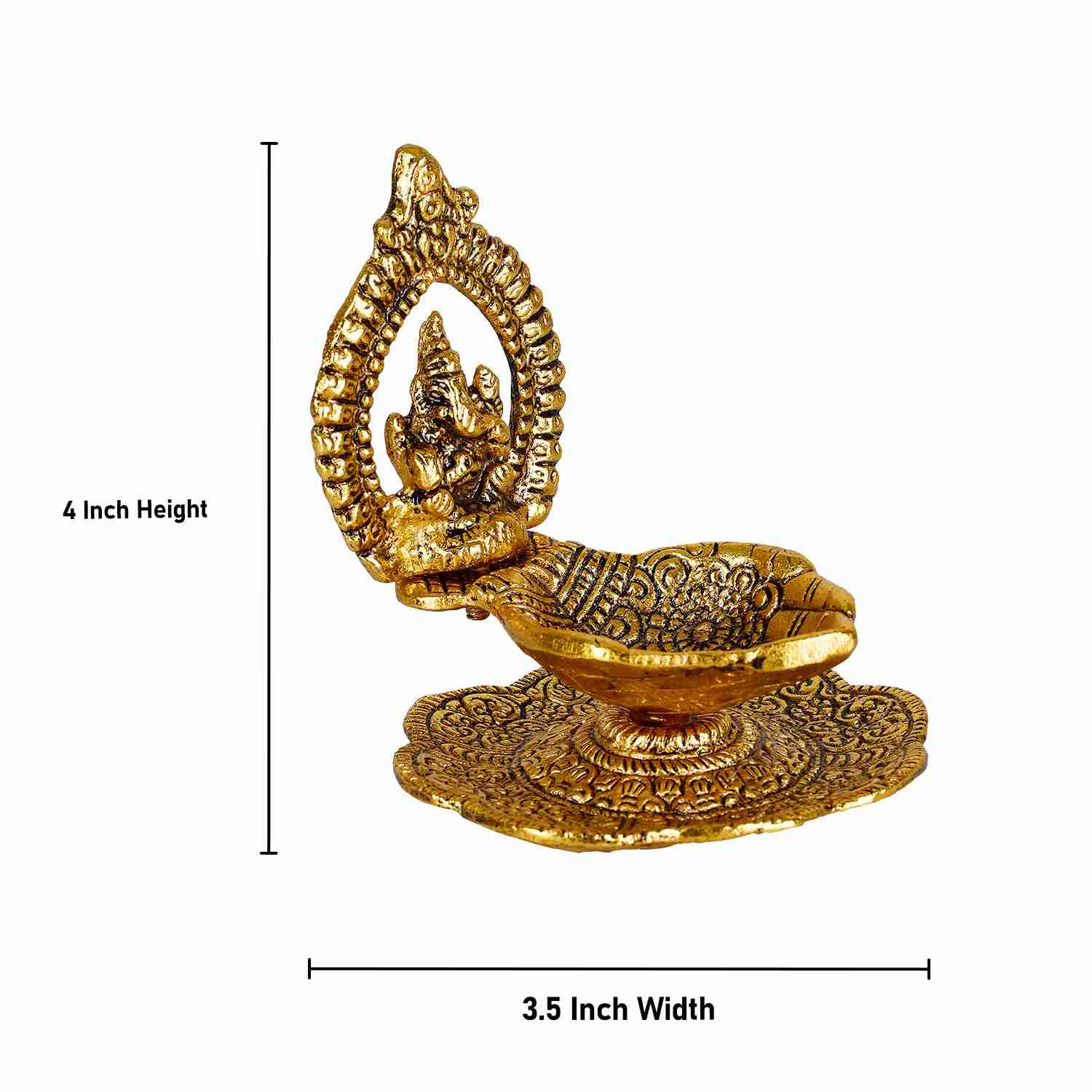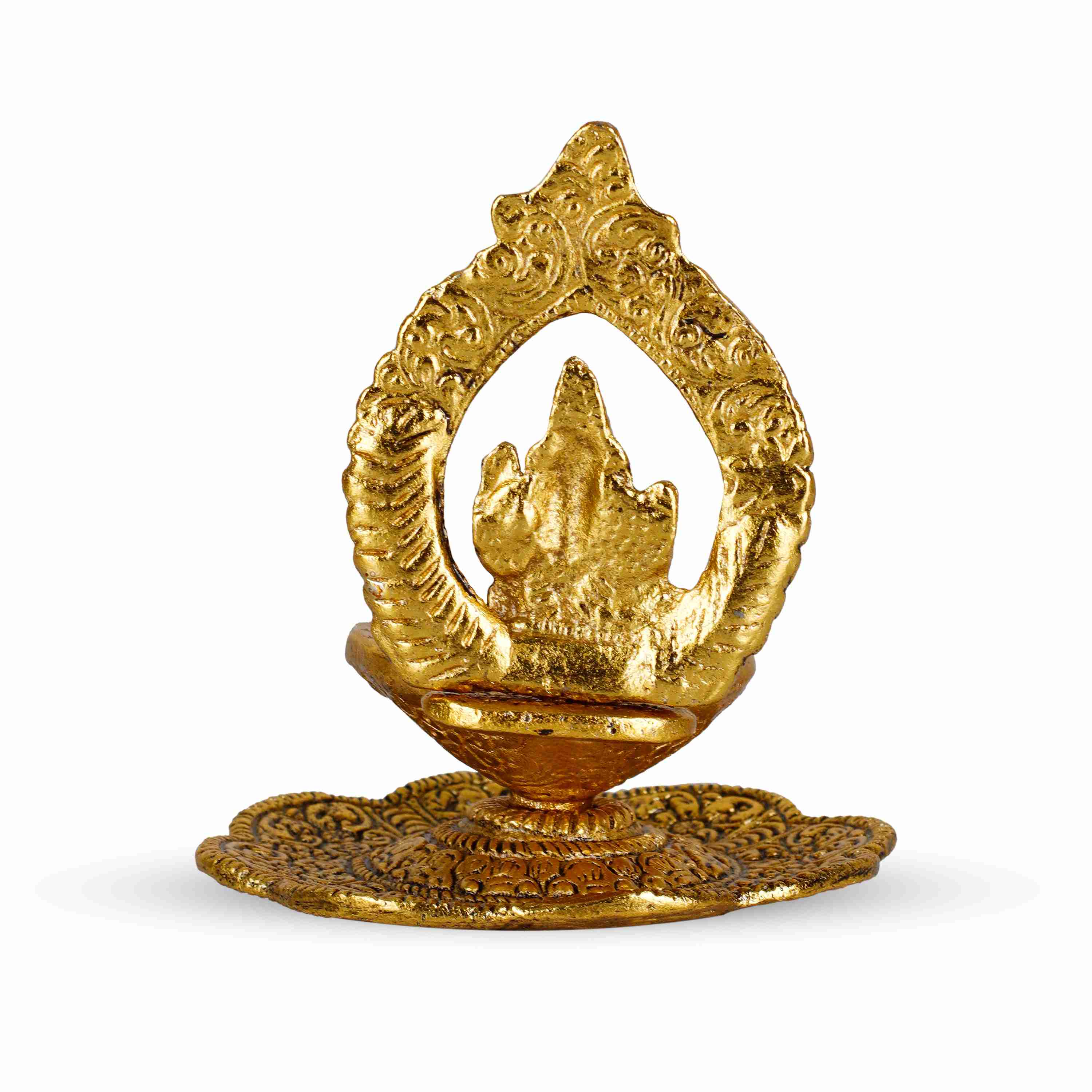 Ganesha Diya - 4 x 3.5 Inches | Aluminium Hand Deep/ Ganpati Lamp/ Ganapathi Vilakku for Pooja/ 120 Gms Approx