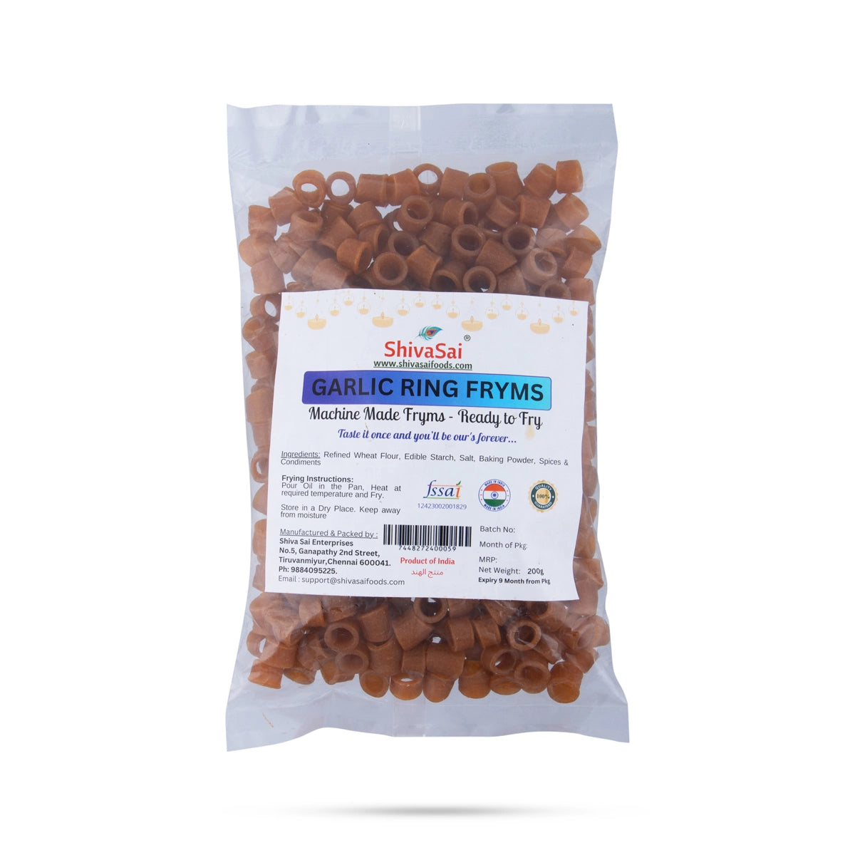 Garlic Ring Fryms - 200 Gms | Machine Made Fryms/ Ready To Fry/ Papad/ Fryums