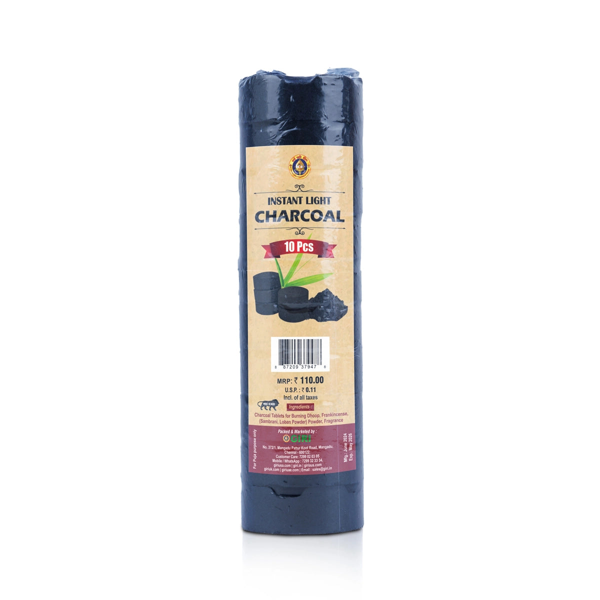 Giri Instant Light Charcoal - 10 Pcs | Instant Charcoal/ Instant Coal for Pooja