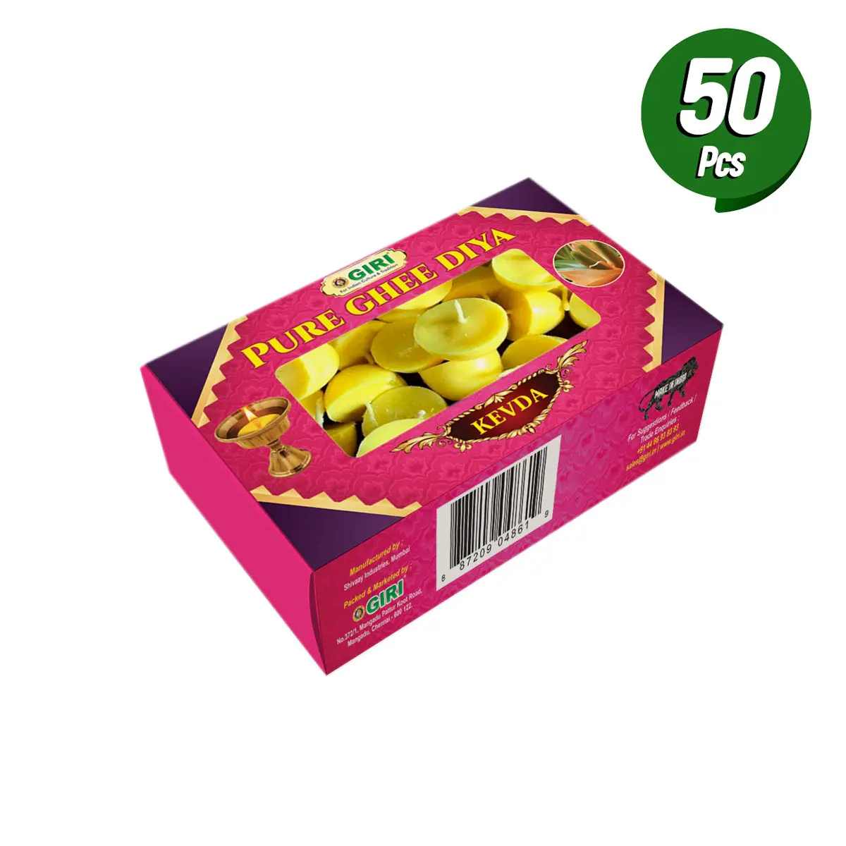 Giri Pure Ghee Diya - 50 Pcs | Ghee Wicks/ Diya Batti/ Jyot Batti/ Ghee Cotton Wicks for Pooja