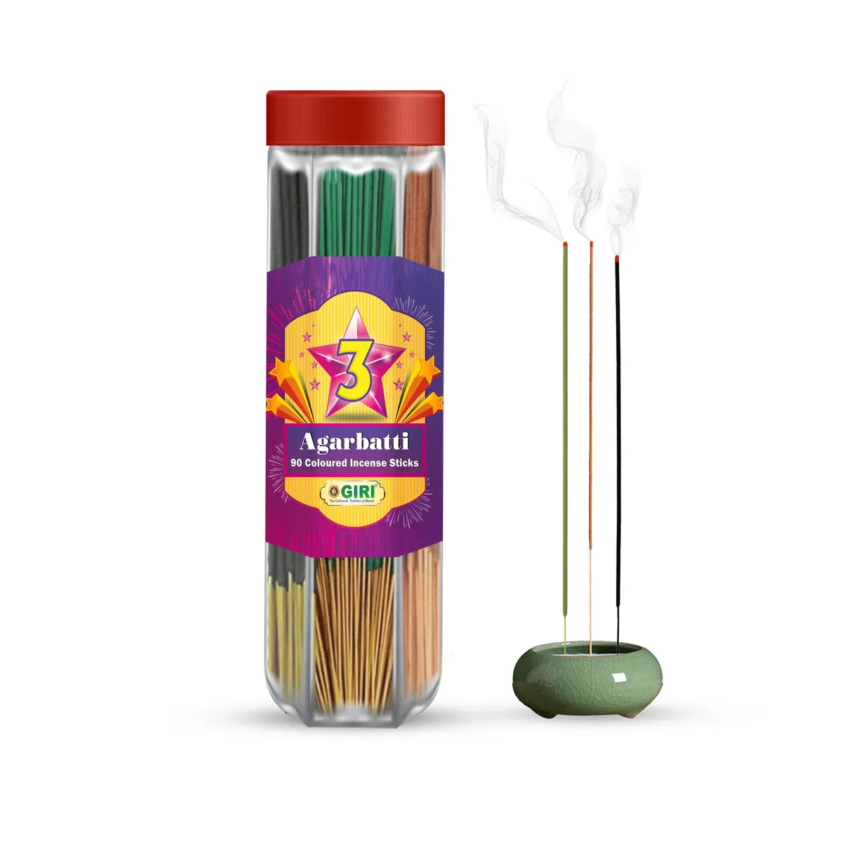 Giri Three Star Incense Sticks - 90 Sticks | 3 Star Agarbathi/ Agarbatti for Pooja & Prayer
