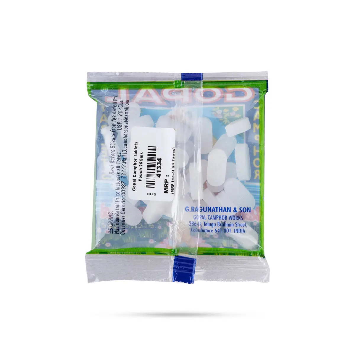 Gopal Camphor Tablets Pouch - 25 Gms | Kapoor/ Karpooram for Pooja