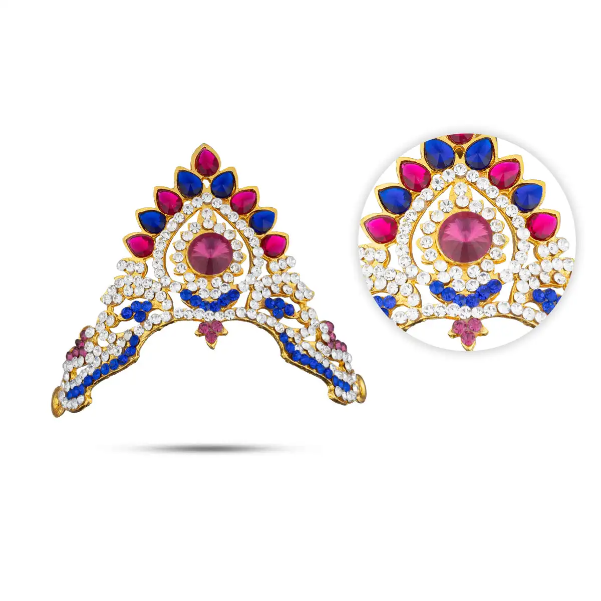 Half Crown - 3 x 3.25 Inches | Multicolour Stone Kireedam/ Stone Kiridam for Deity/ 35 Gms Approx