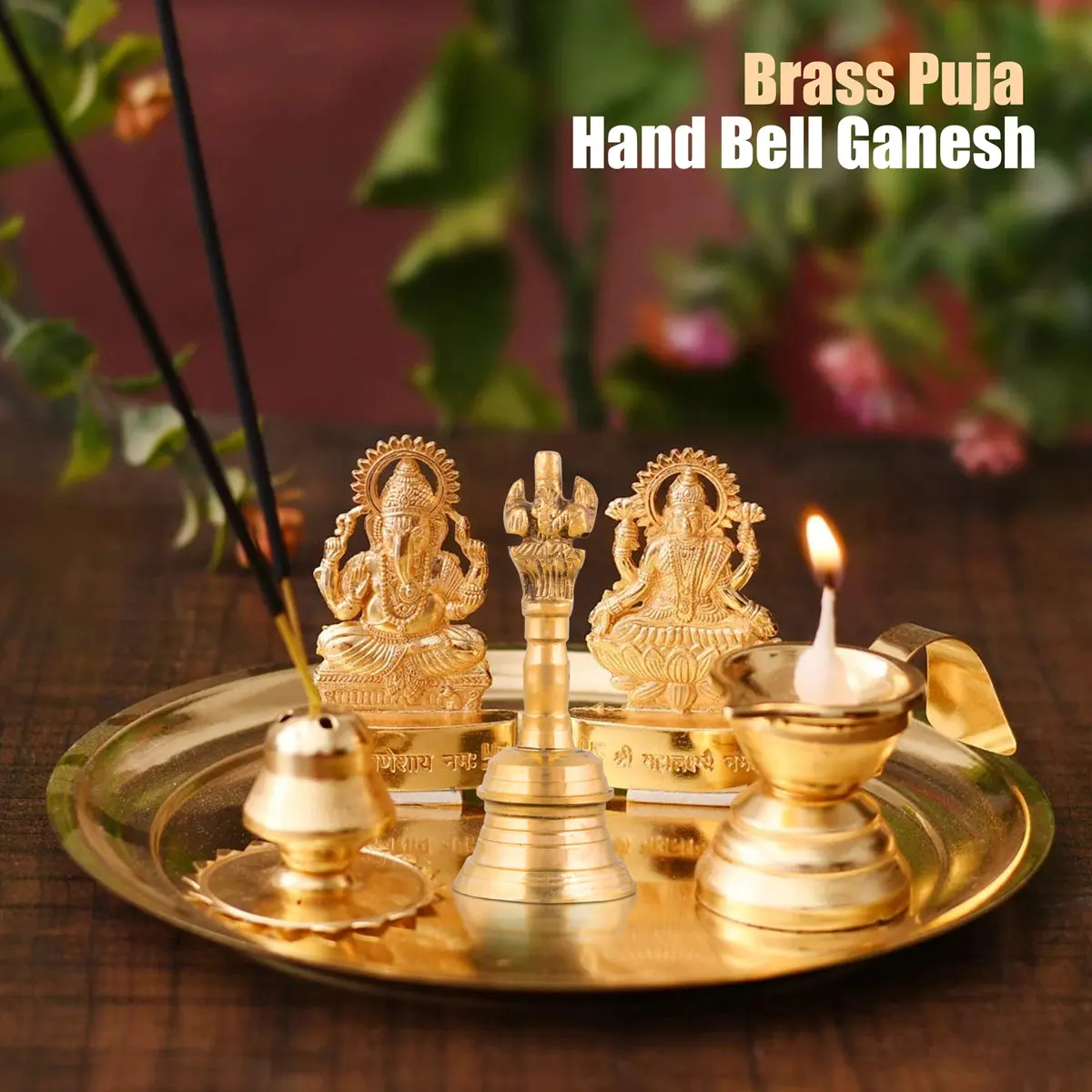 Hand Bell - 4.5 x 1 Inches | Puja Bell/ Brass Bell/ Ganesh Handle Ghanti for Home