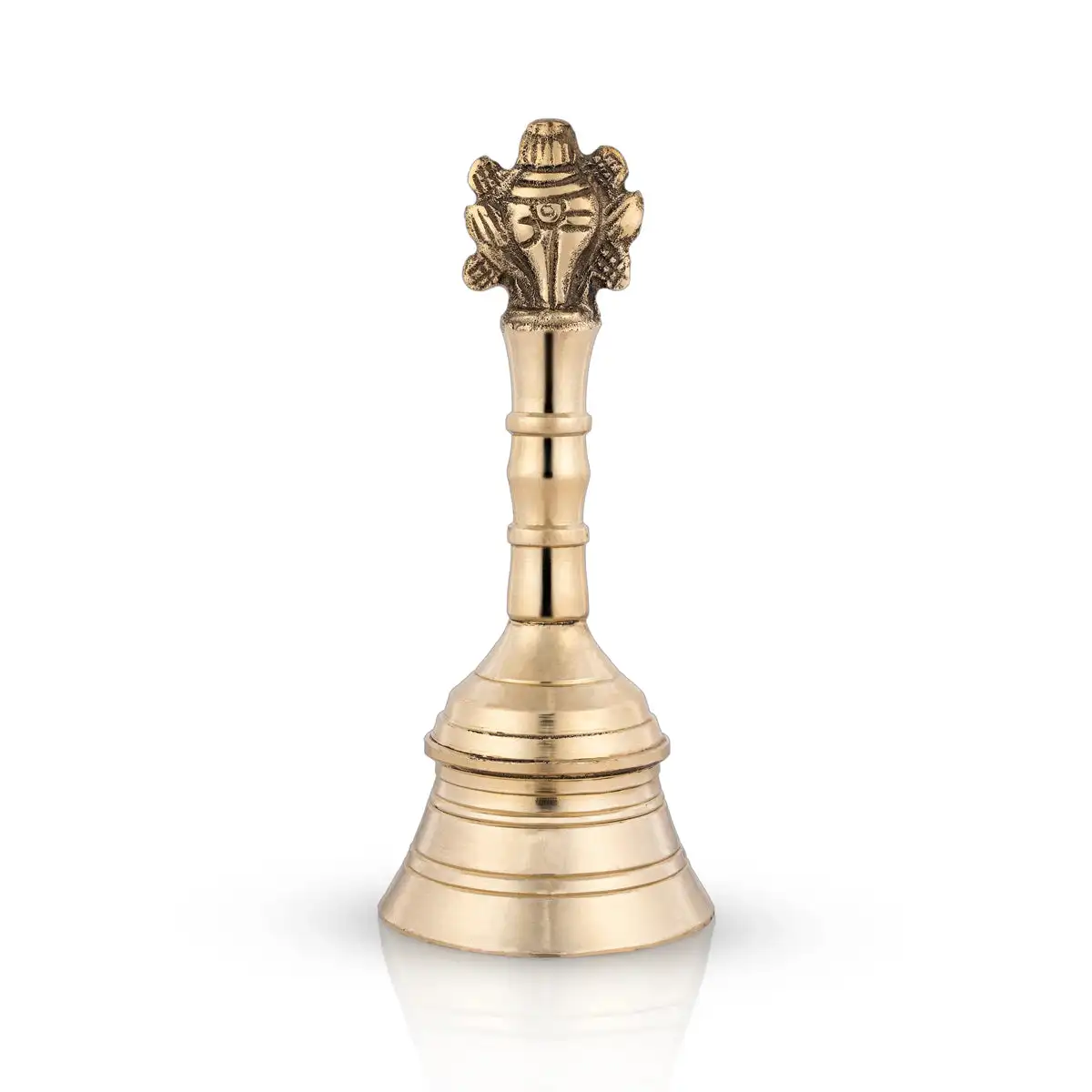 Hand Bell - 5.5 x 2.5 Inches | Shankh Chakra Handle Ghanti/ Pooja Bell/ Brass Bell for Home/ 330 Gms Approx
