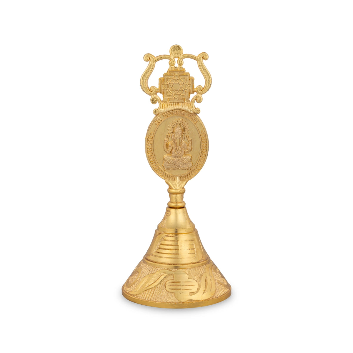 Home / Products / Pooja Bells / Hand Bell With Kuber Lakshmi & Ganesh Design Handle - 5.5 x 2.5 Inches | Zinc Ghanti/ Pooja Bell for Home