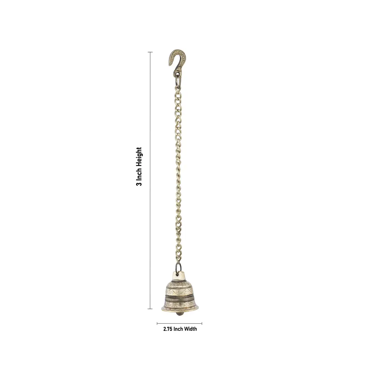 Hanging Bell with Chain - 3 x 2.75 Inches | Antique Brass Bell Hanging for Pooja/ 450 Gms Approx