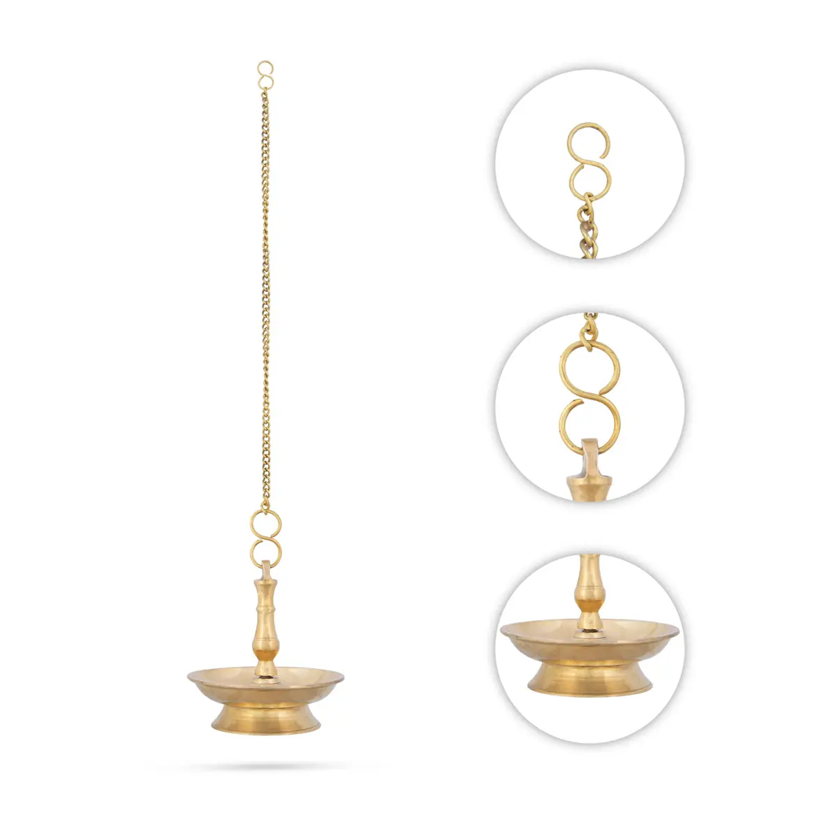 Hanging Lamp With Chain - 4.5 x 4 Inches | Latkhan Vilakku/ Brass Deep for Pooja/ 520 Gms Approx