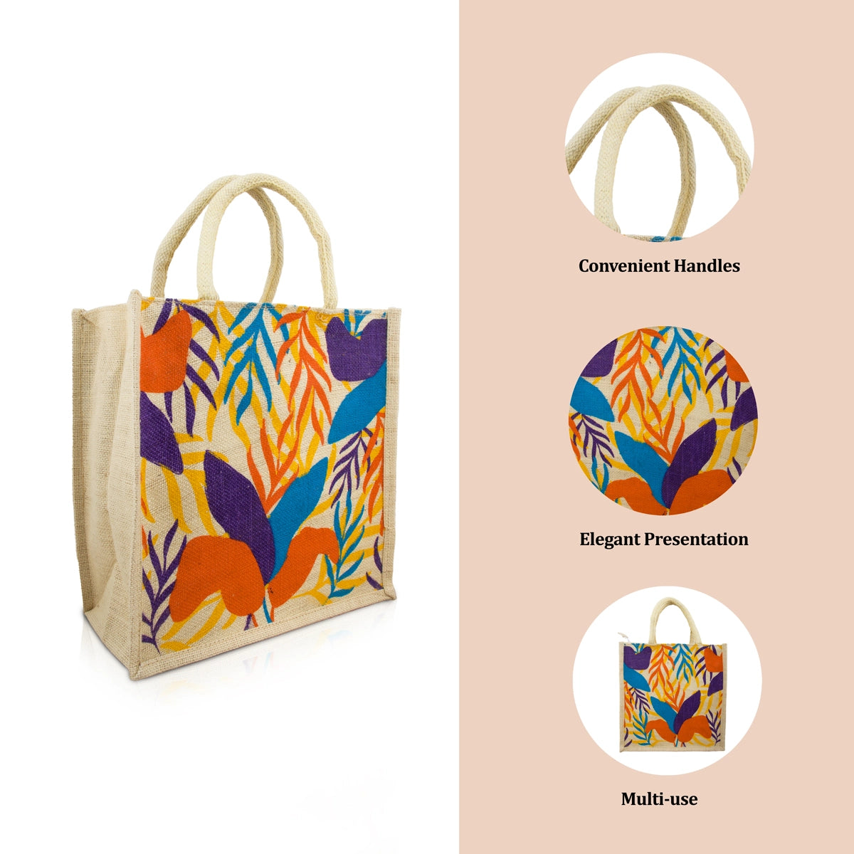 Jute Lunch Bag with Zip - 12 x 12 Inches | Jute Bag/ Handbag/ Tote Bag for Women