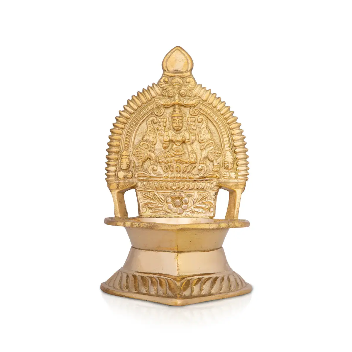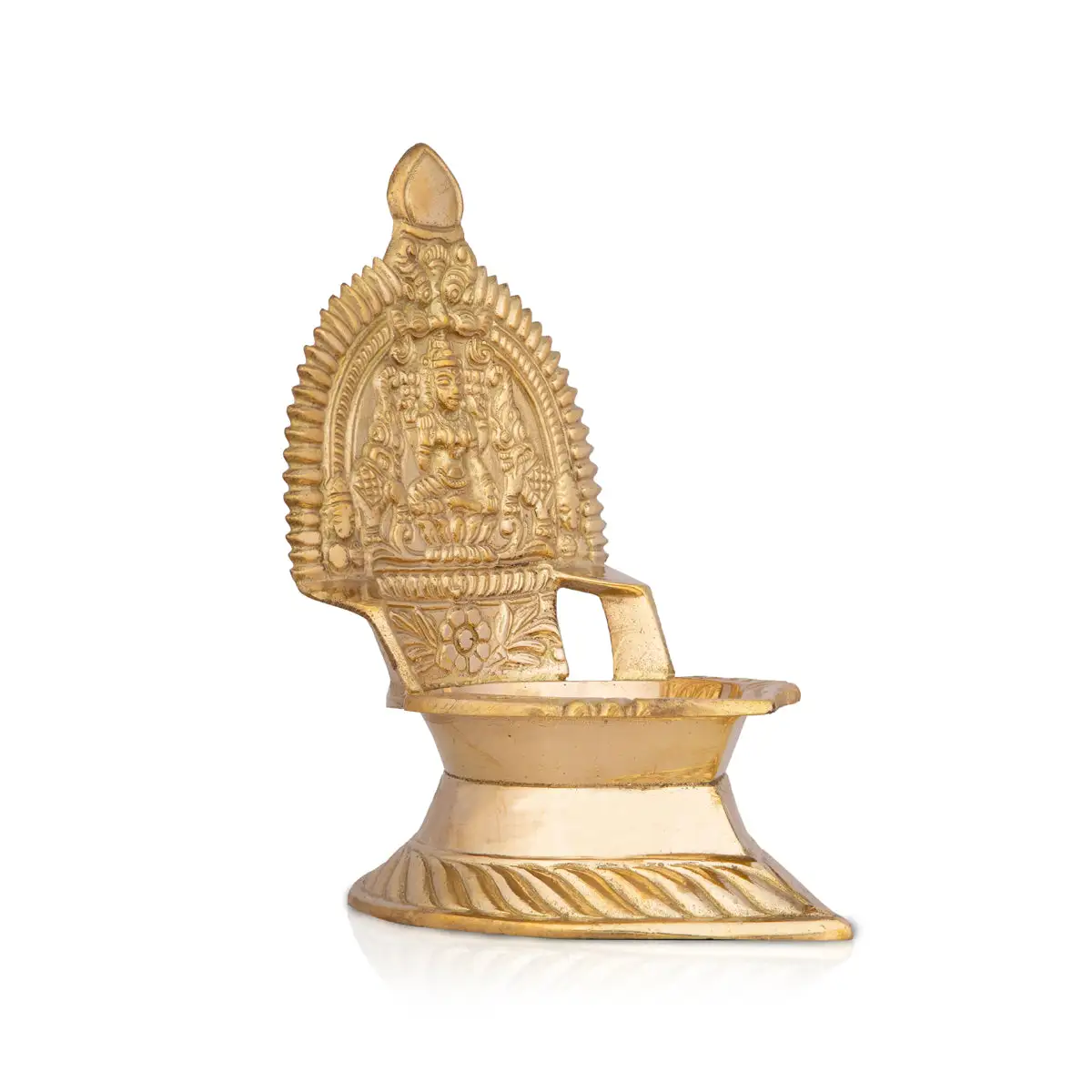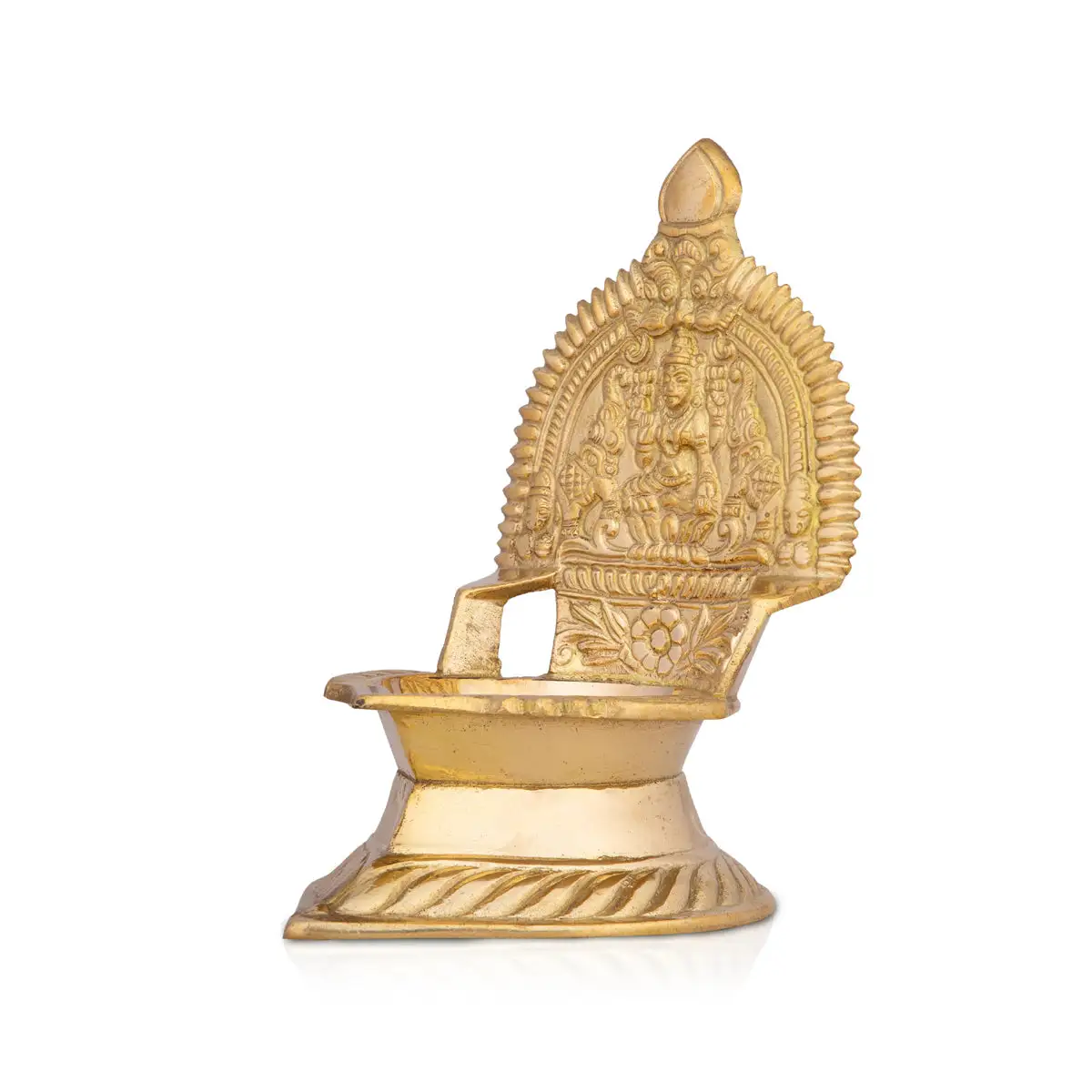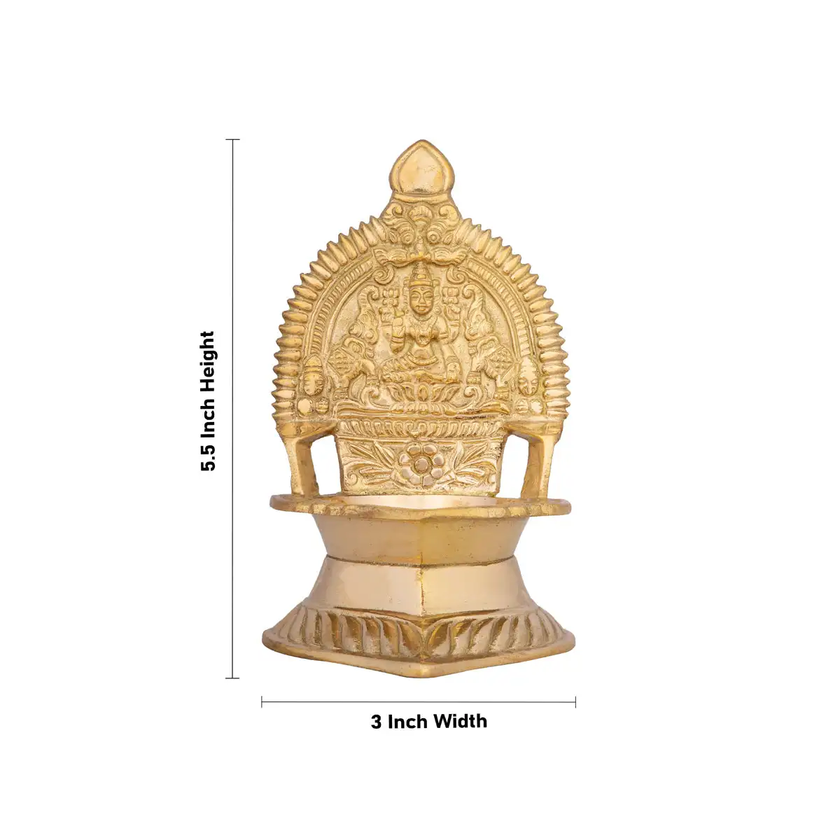Kamakshi Deepam - 5.5 x 3 Inches | Brass Kamatchi Vilakku/ Gold Polish Kamakshi Lamp for Pooja/ 340 Gms Approx