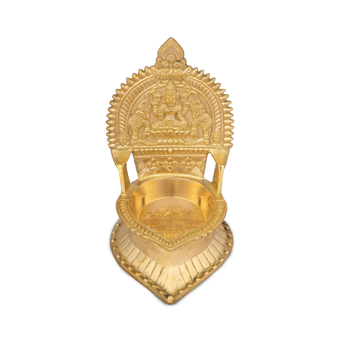 Kamakshi Deepam - 5 x 3 Inches | Brass Kamatchi Vilakku/ Gold Polish Kamakshi Lamp for Pooja/ 220 Gms Approx
