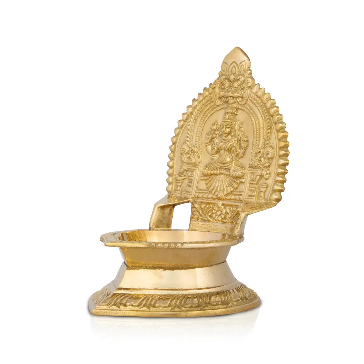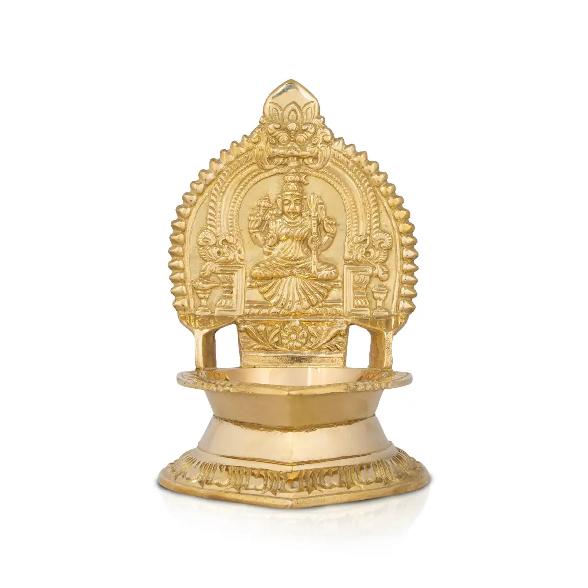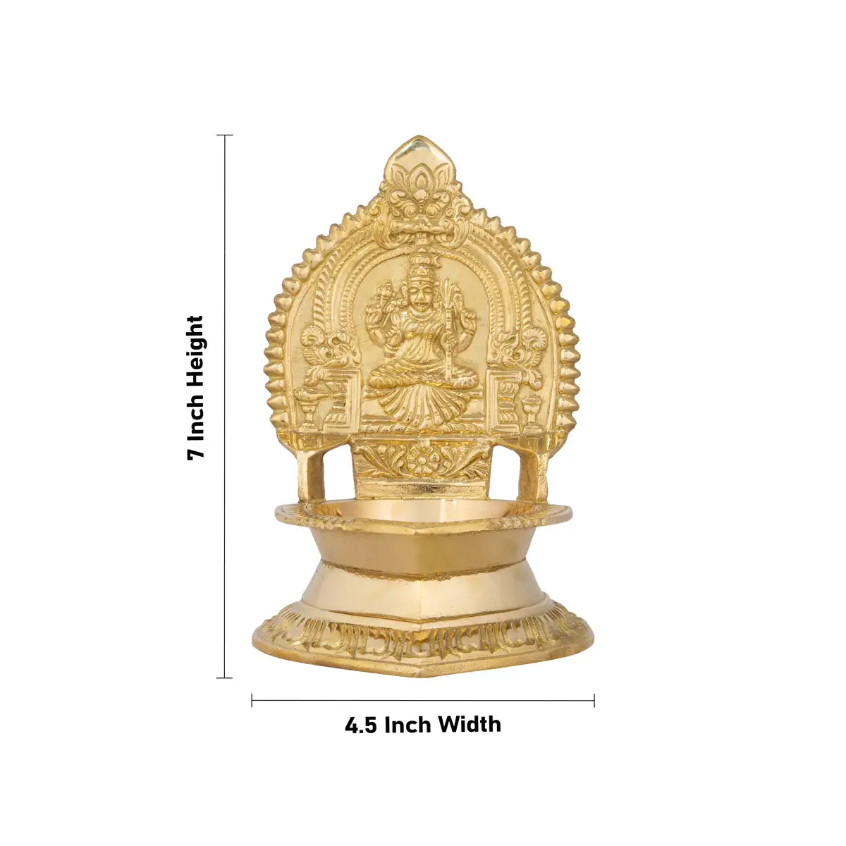 Kamakshi Deepam - 7 x 4.5 Inches | Brass Kamatchi Vilakku/ Gold Polish Kamakshi Lamp for Pooja/605 Gms Approx