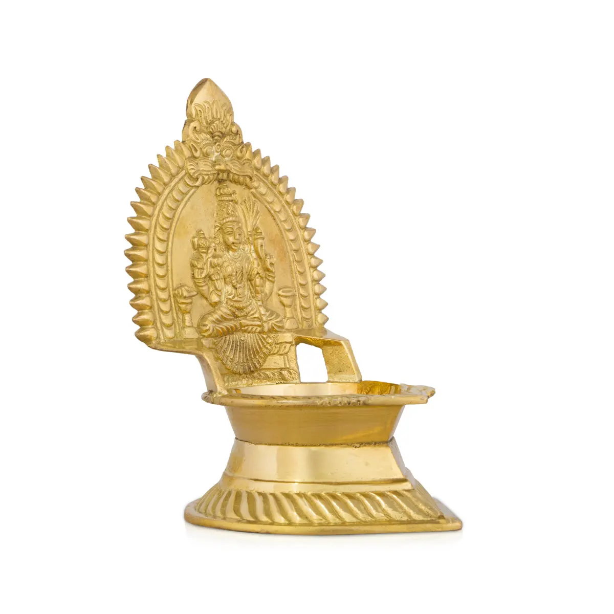 Kanchi Kamakshi Deepam - 5 x 3 Inches | Brass Kamatchi Vilakku/ Gold Polish Kamakshi Lamp/ 385 Gms Approx