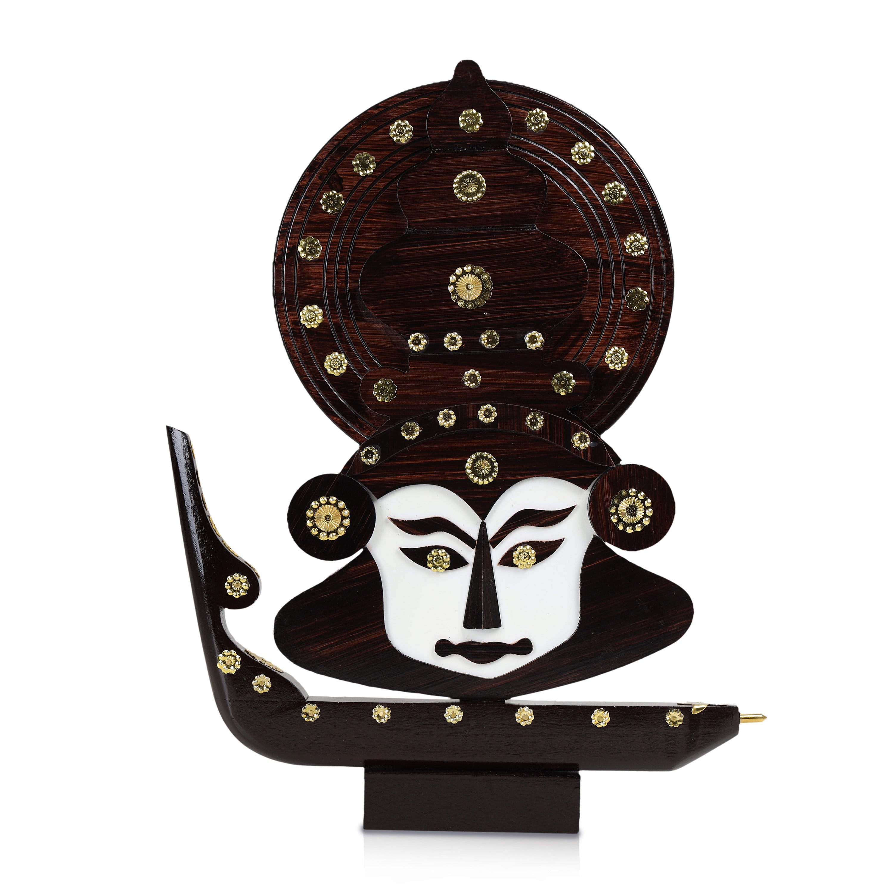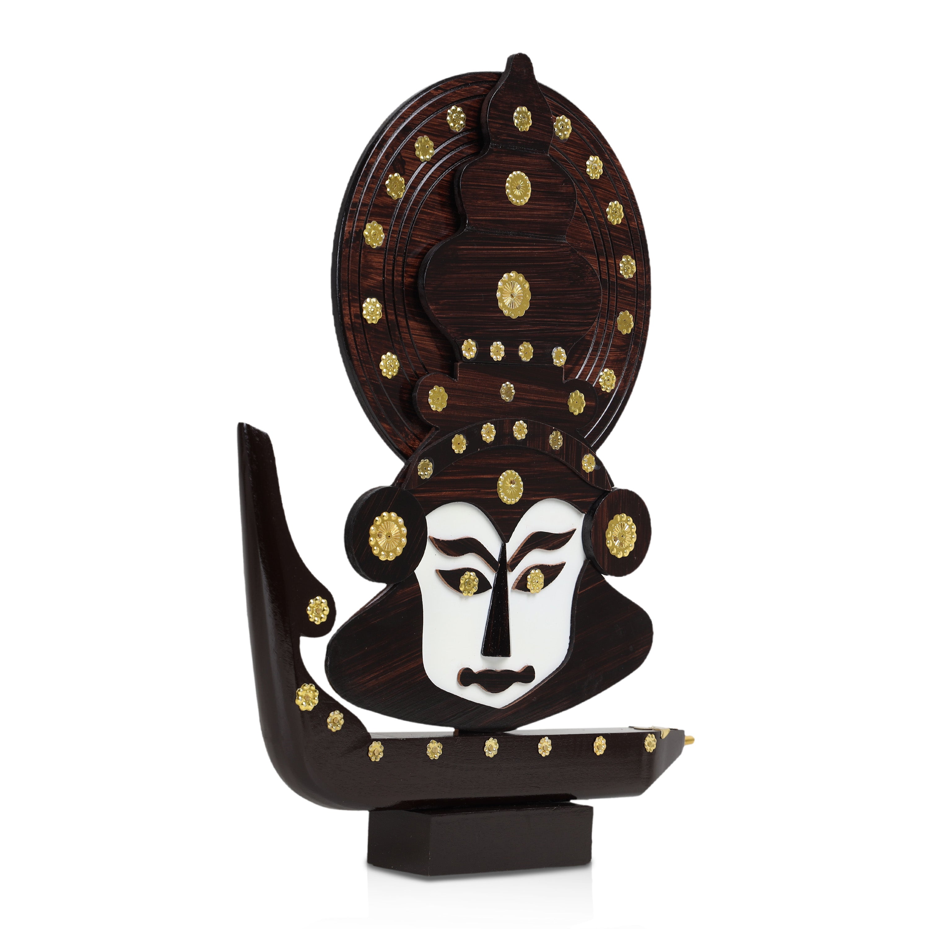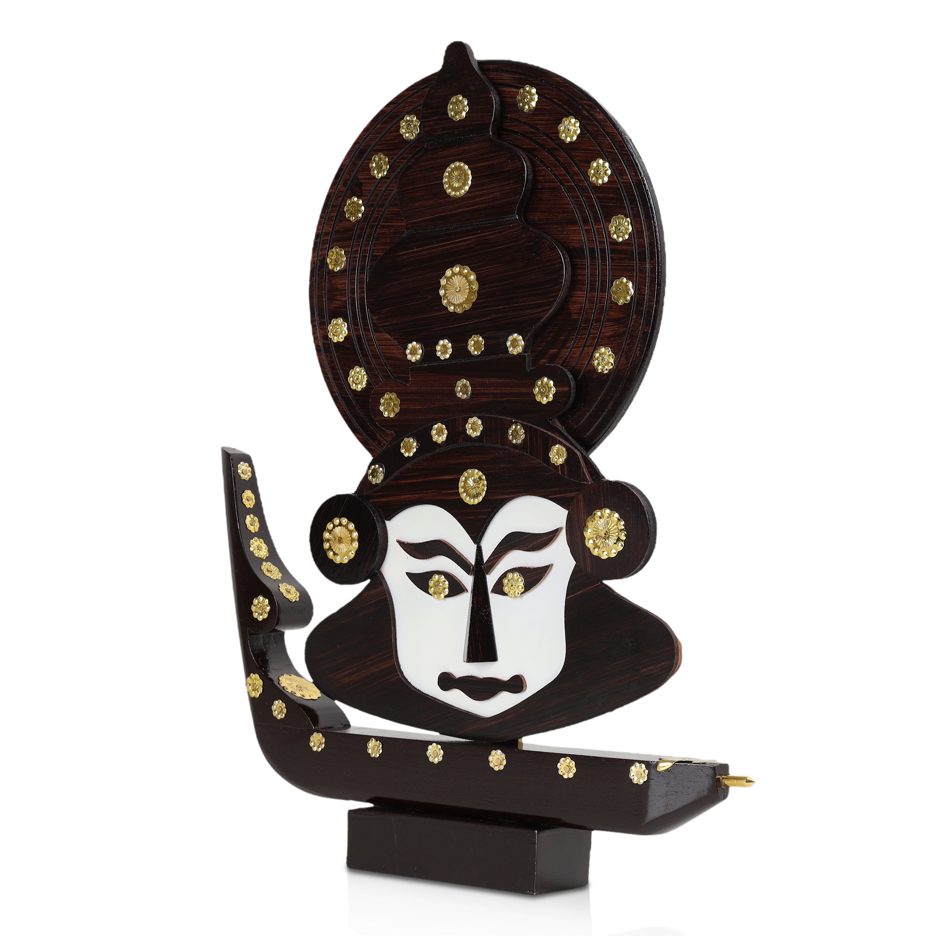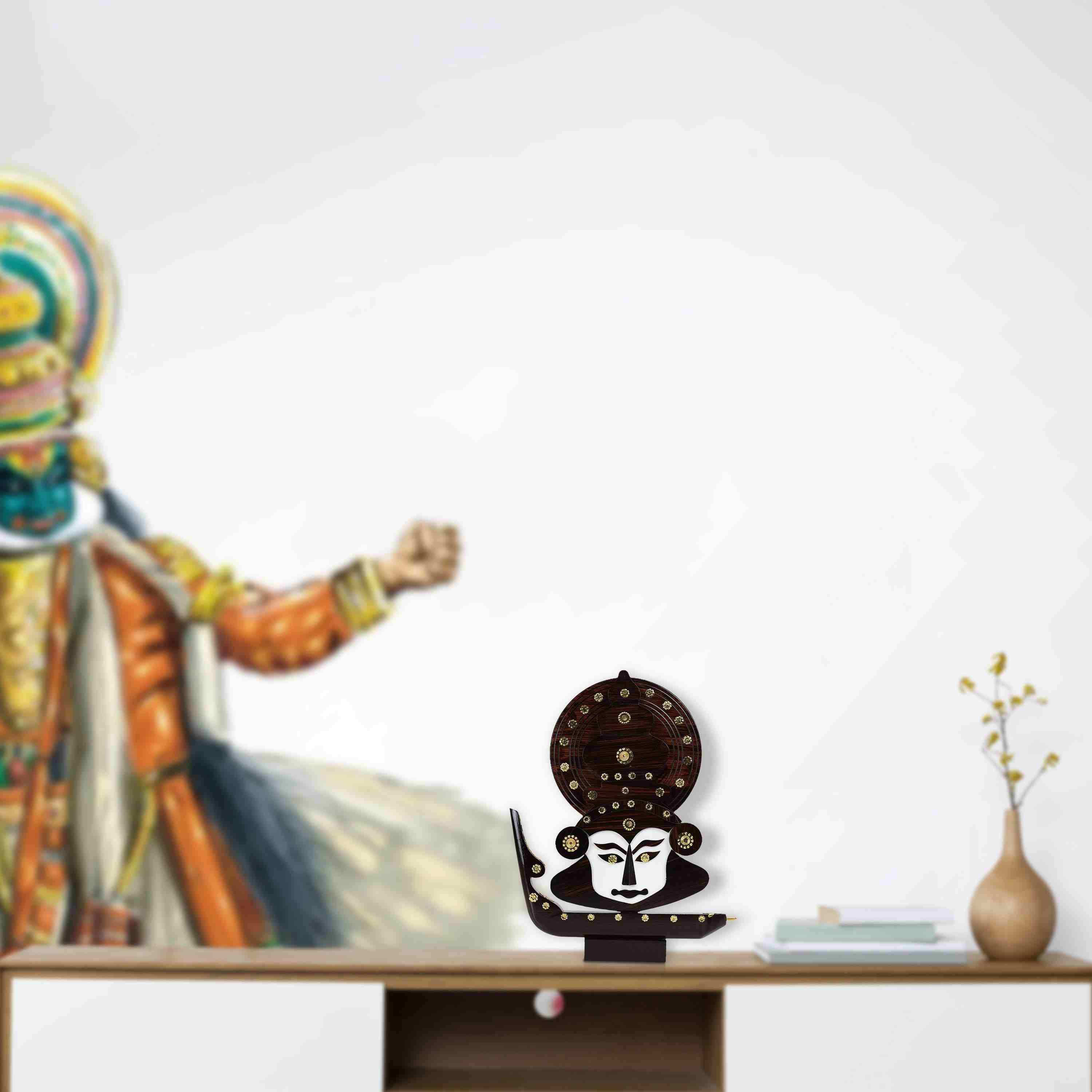 Home / Products / Table Stand Accessories / Kathakali Face with Boat Statue - 12 x 11 Inches | Wooden Kathakali Face/ Kathakali Dancer Face for Home Decor