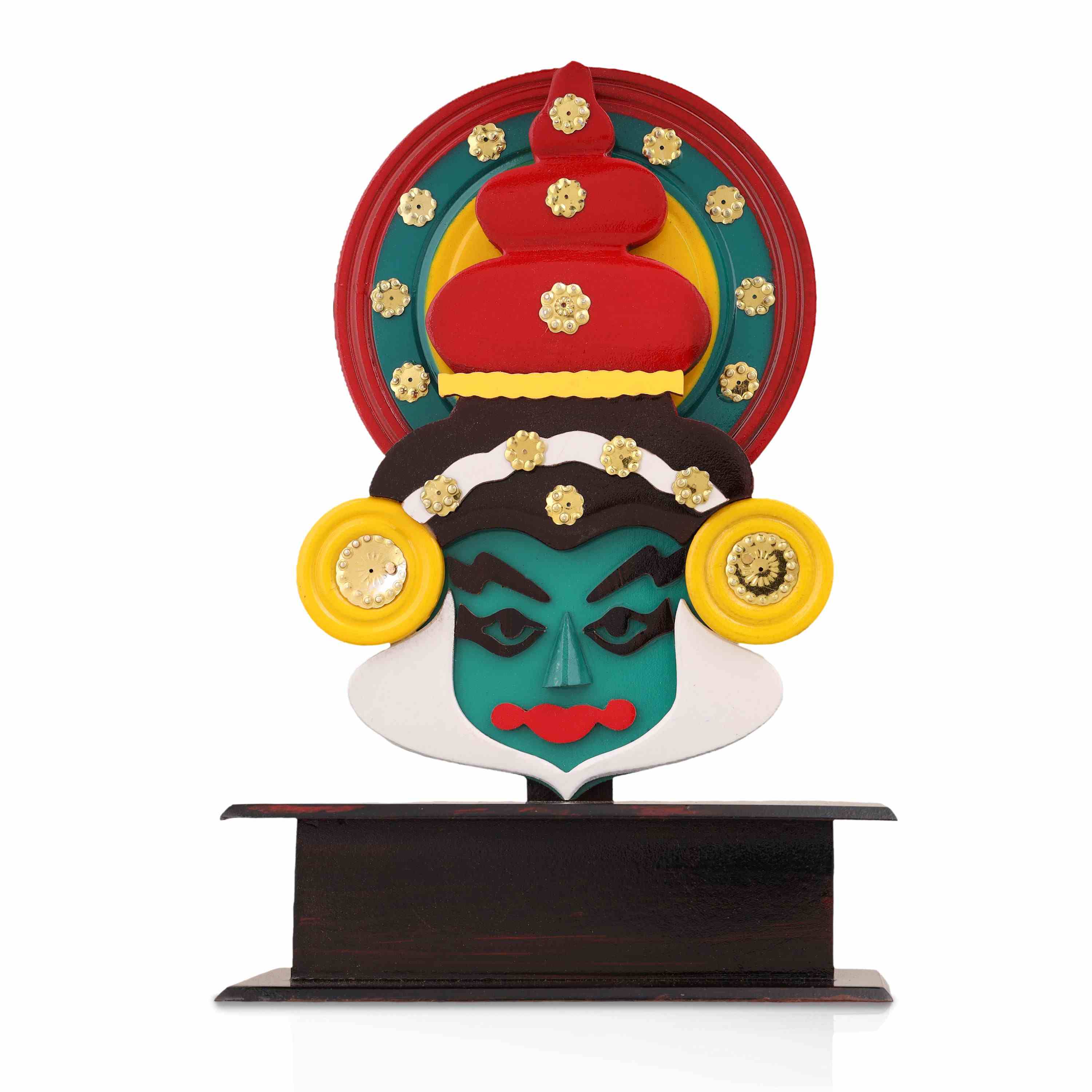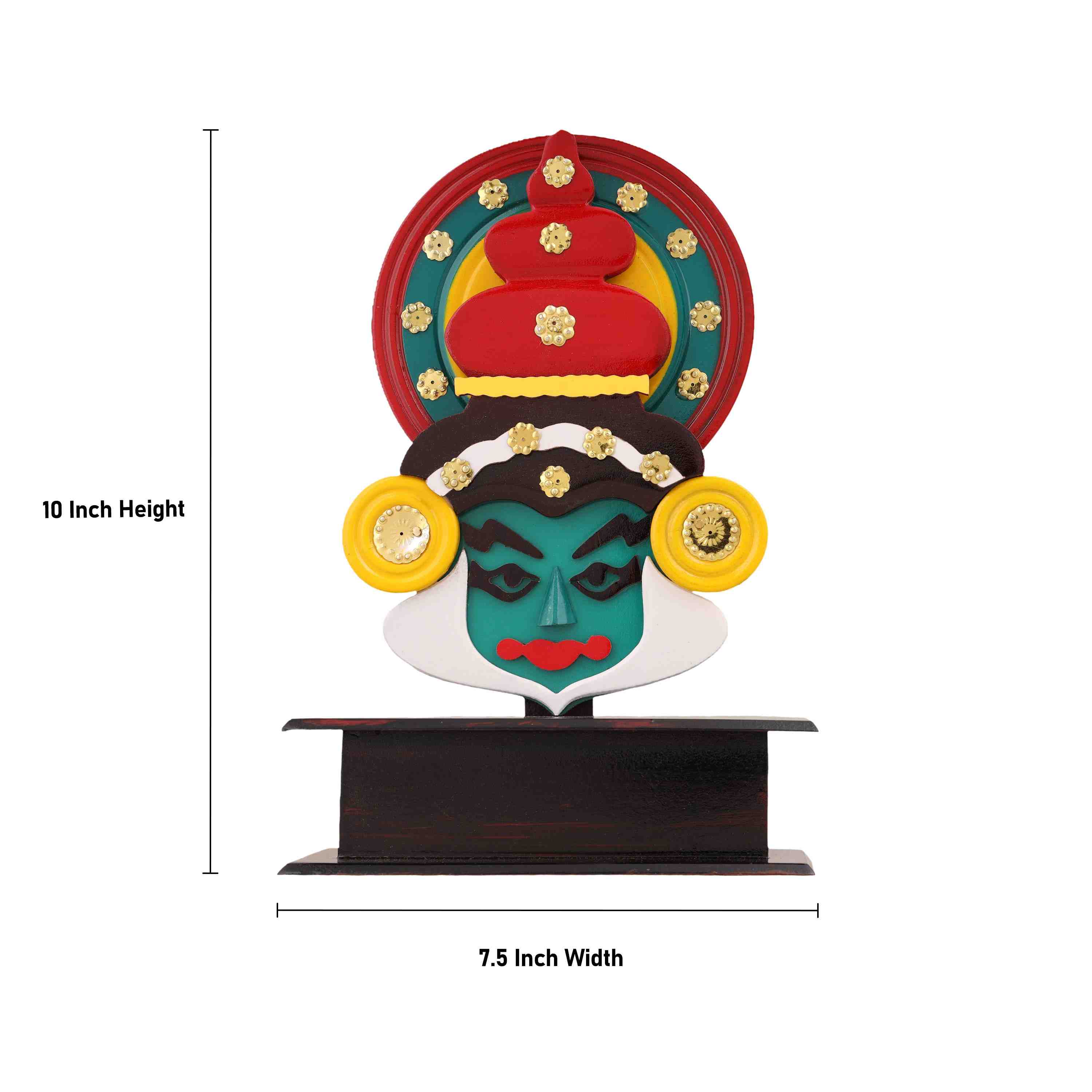 Kathakali Head with Stand - 10 x 7.5 Inches | Wooden Kathakali Face Paint for Wall Decor