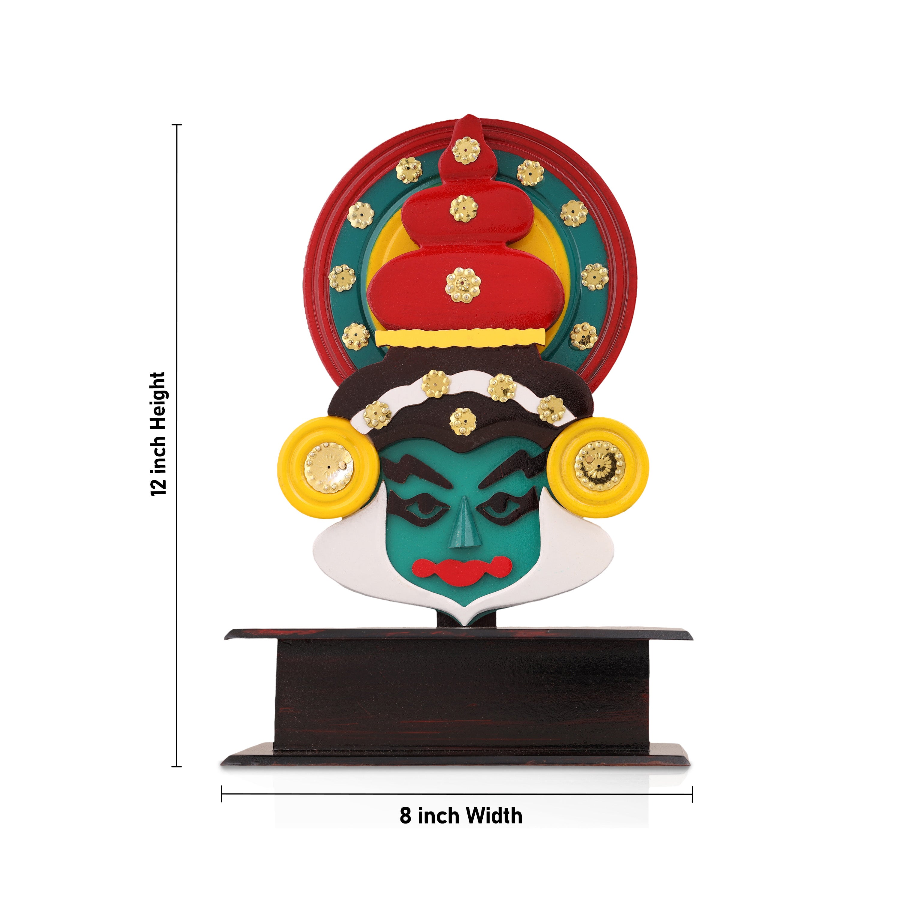 Kathakali Head with Stand - 12 Inches | Wooden Kathakali Face Paint for Wall Decor