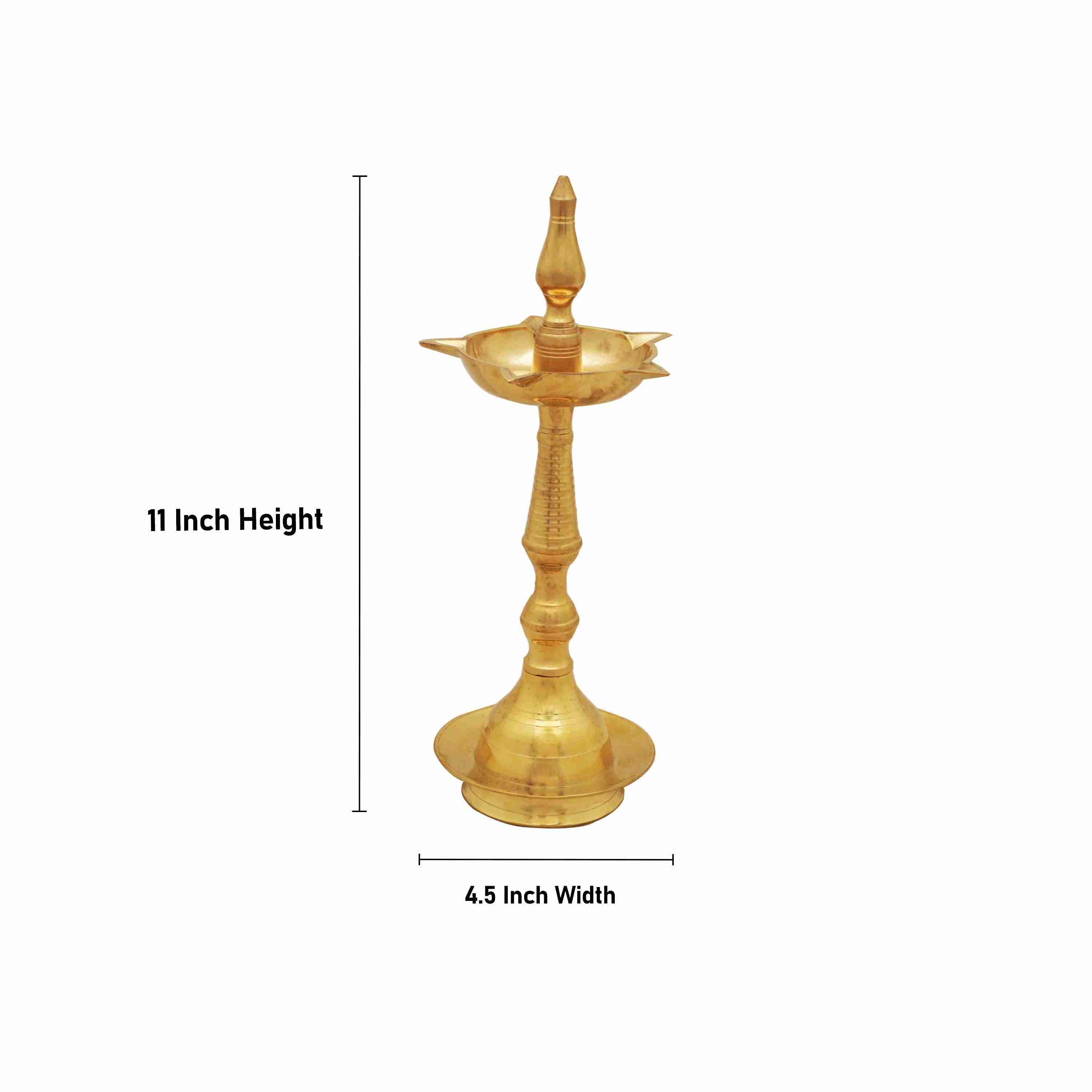 Kerala Vilakku - 11 Inches | 5 Face Nilavilakku/ Brass Kerala Lamp for Pooja
