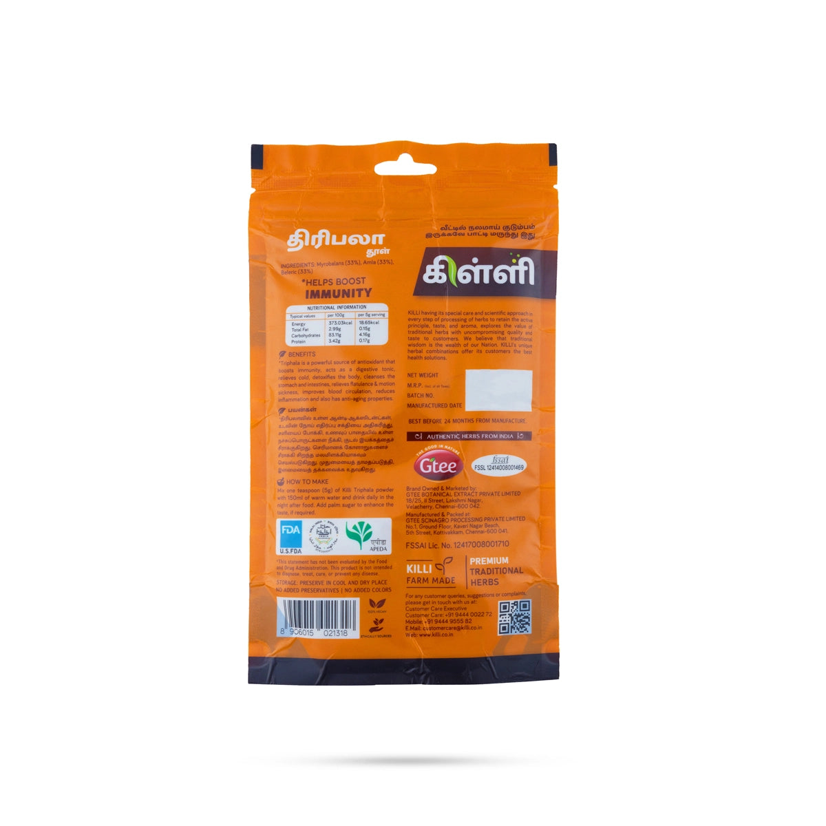 Killi Triphala Powder - 100 Gms | Amla Harad Baheda/ Organic Triphala Churna/ Helps In Digestion