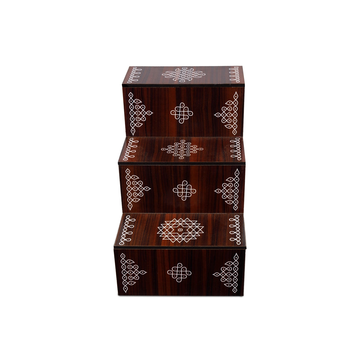 Kolam Design Golu Stand - 8 x 7.5 x 5.5 Inches | Wooden Golu Padi/ Diya Stand/ 3 Steps Golu Step for Navratri