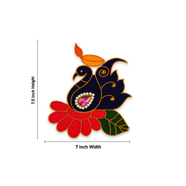 Kolam Sticker - 7.5 x 7 Inches | Velvet Peacock Muggulu Sticker/ Ready Made Rangoli Sticker for Home Decor