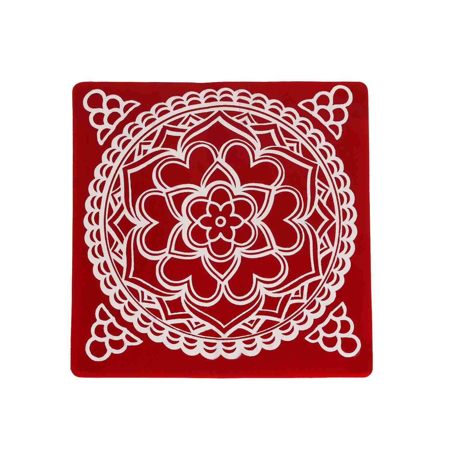 Kolam Sticker Pair - 9.5 x 9.5 Inches | 2 Pcs/ Maroon Rangoli Sticker for Pooja Room Decor/ Assorted Design