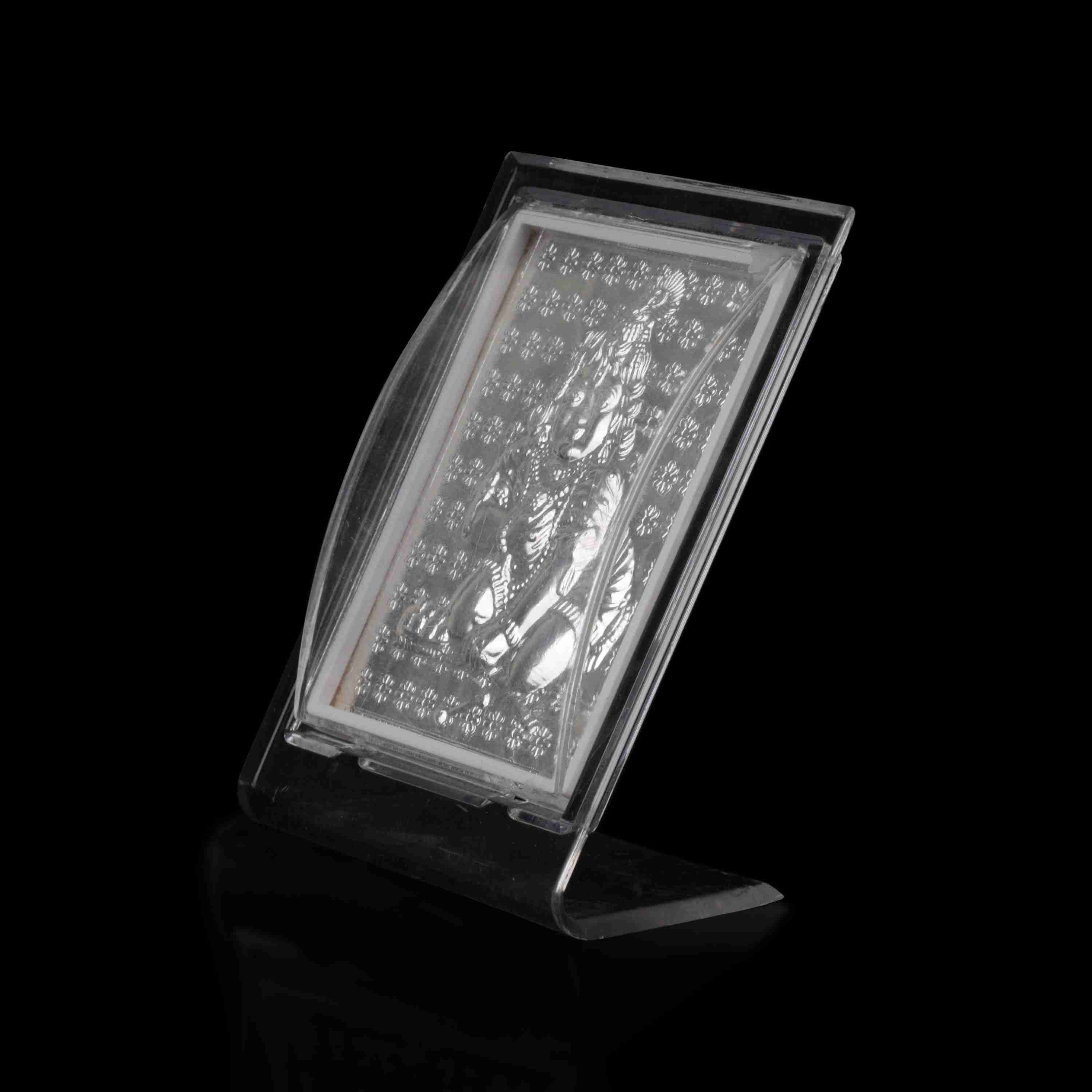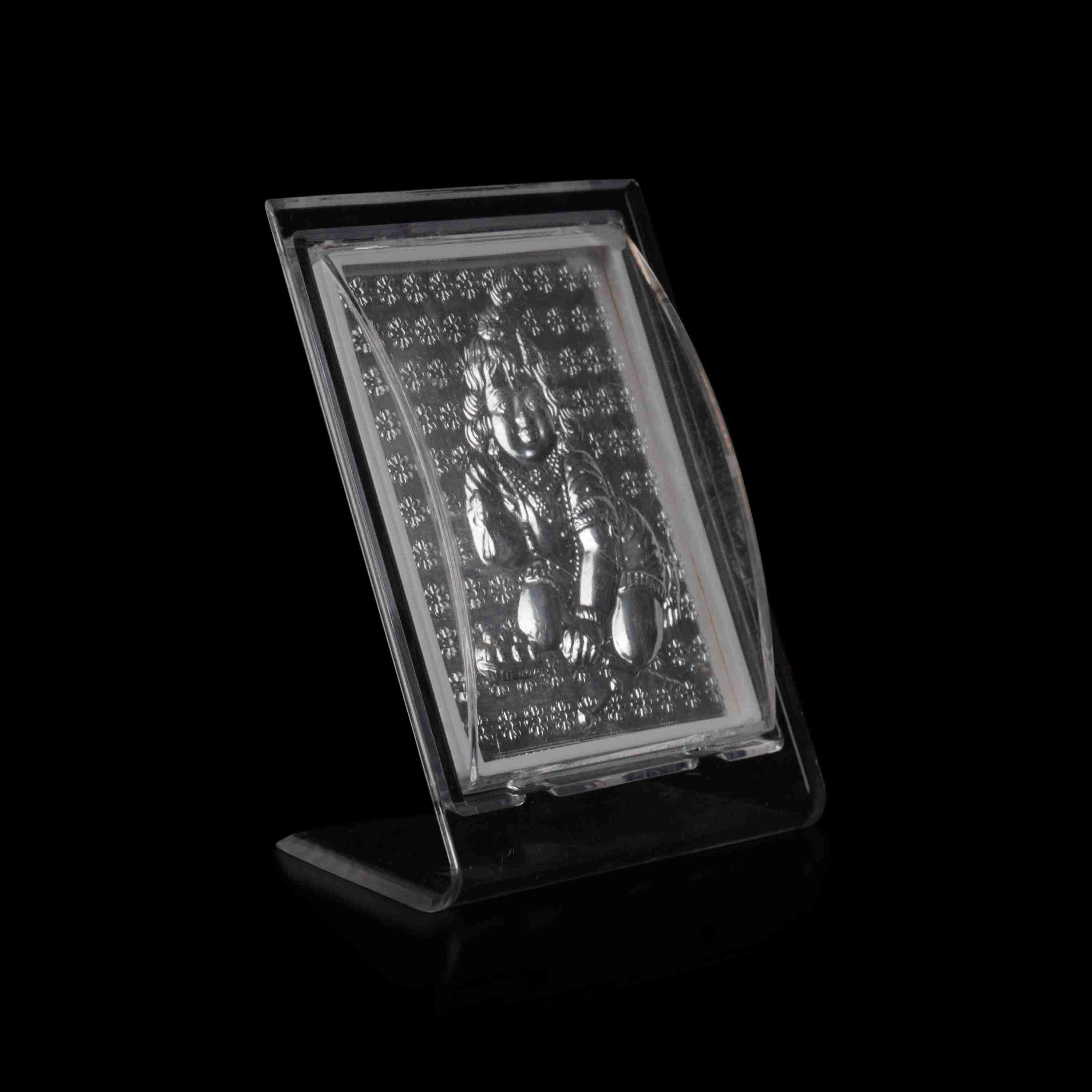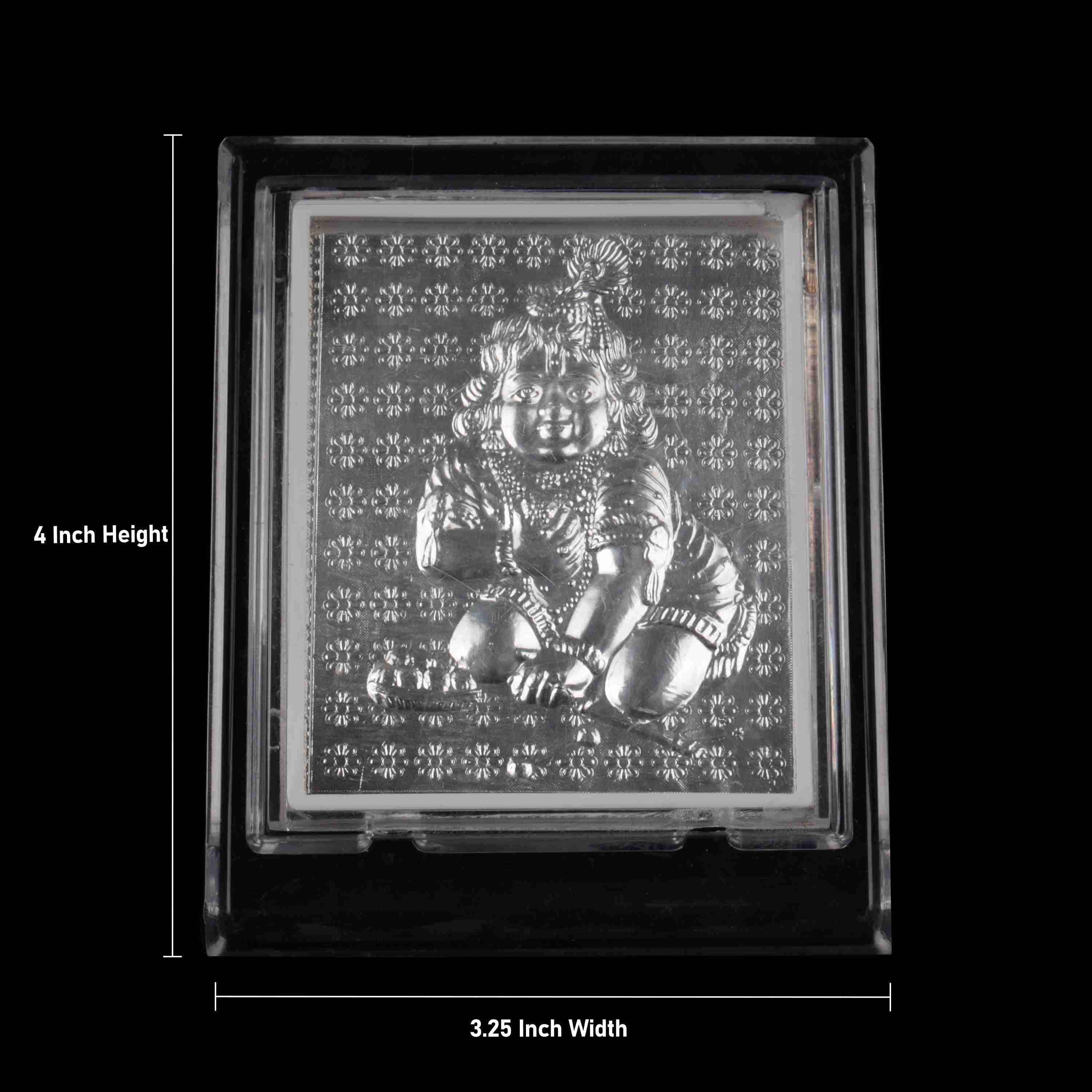 Krishna Frame - 4 x 3.25 Inches | Silver Crawling Kannan Acrylic Stand for Worship