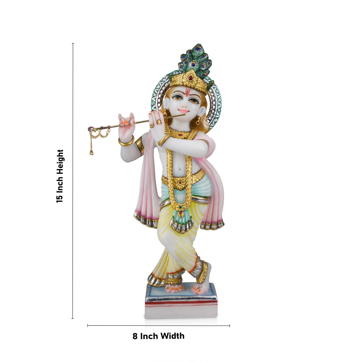 Krishna Murti - 15 x 8 Inches | Marble Murti/ Painted Krishna Idol/ Standing Krishna Statue for Pooja