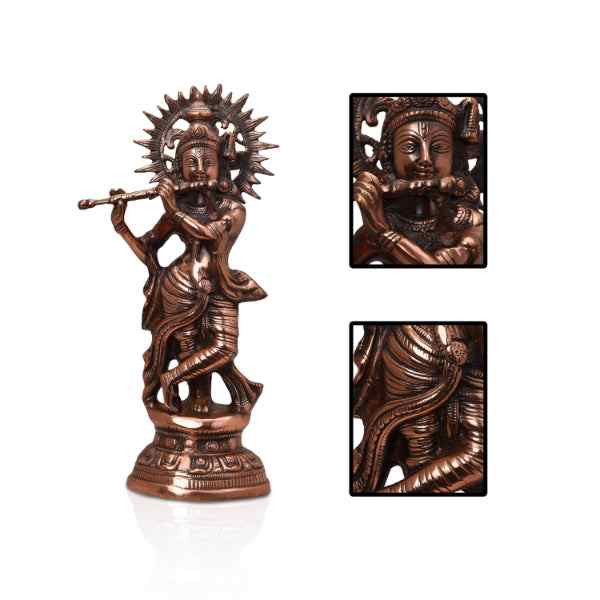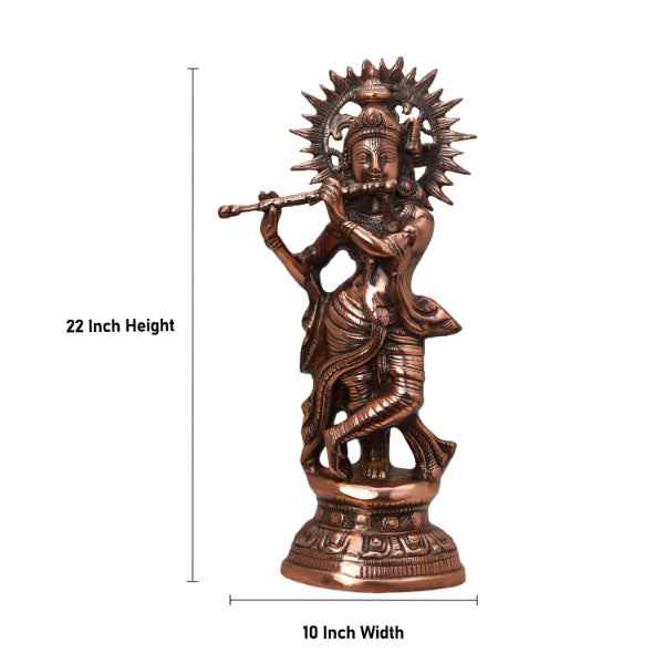 Krishna Murti - 22 x 10 Inches | Krishna Statue/ Copper Oxidised Krishna Idol for Pooja/ 2.240 Kgs Approx