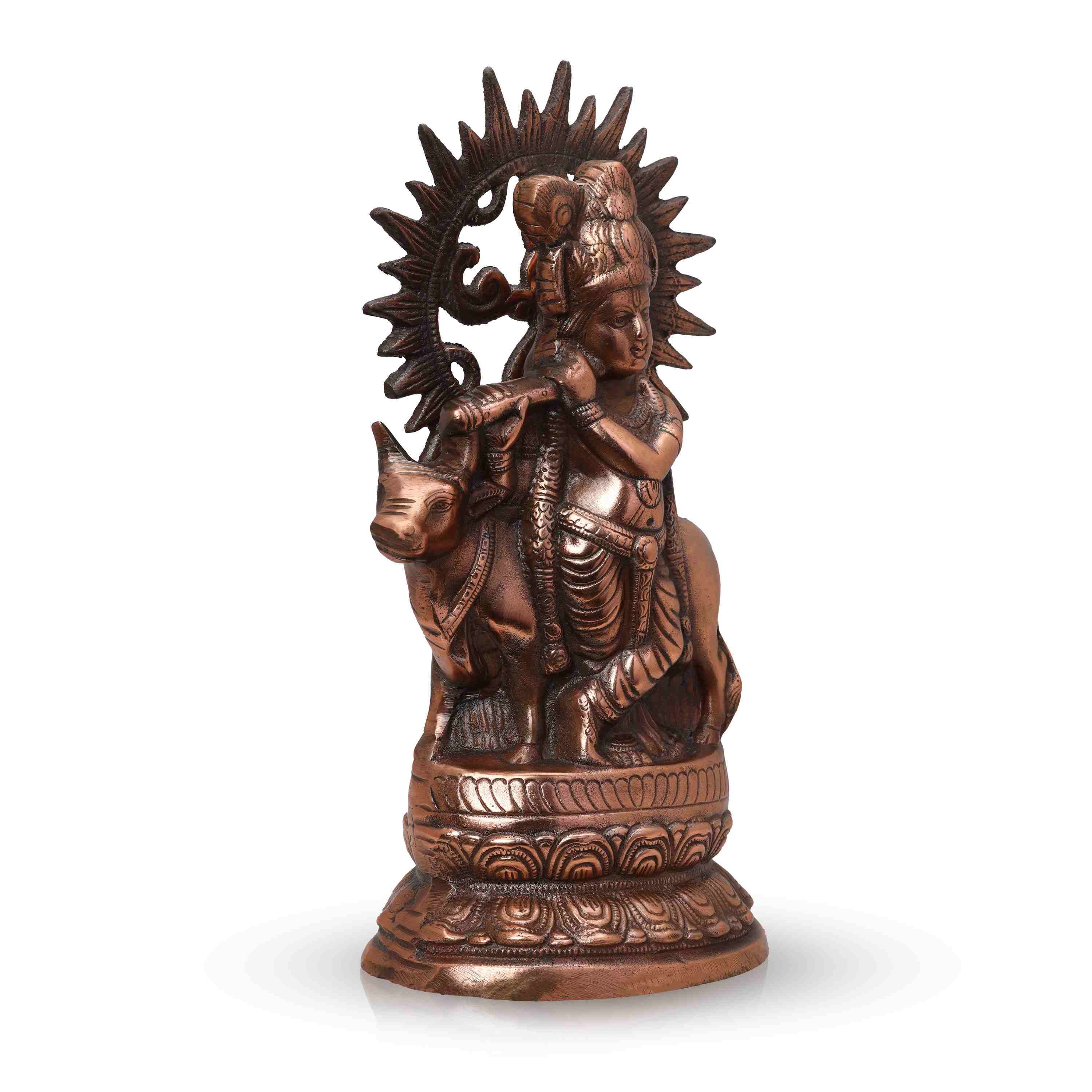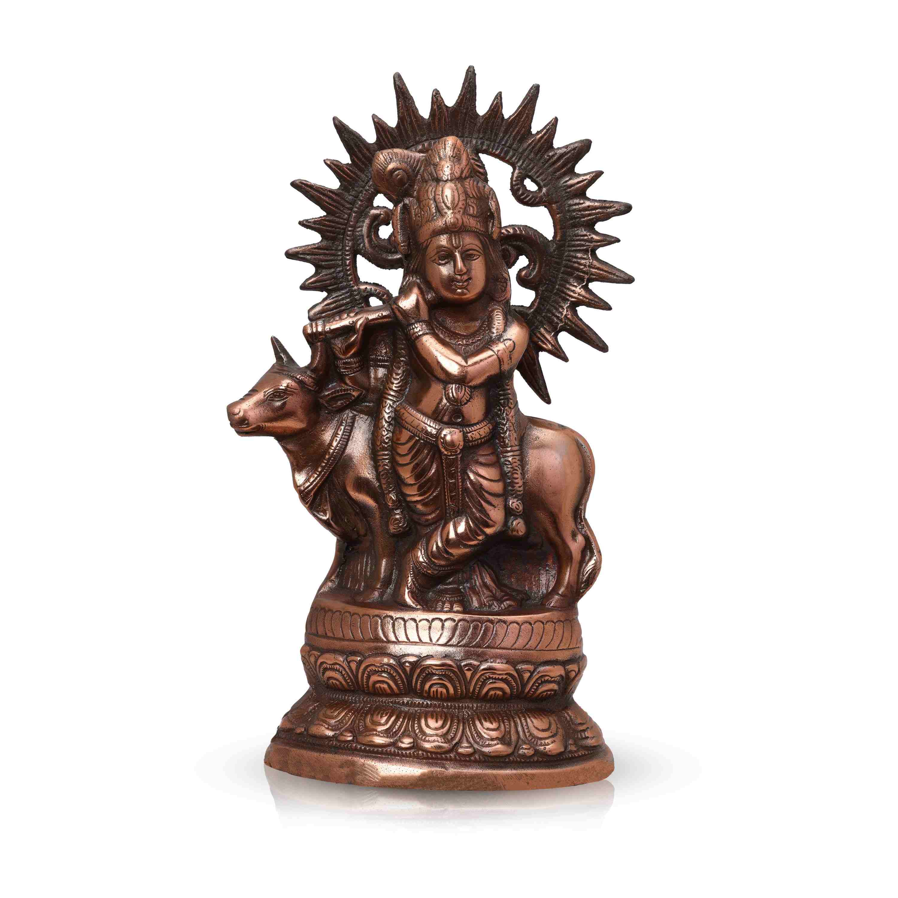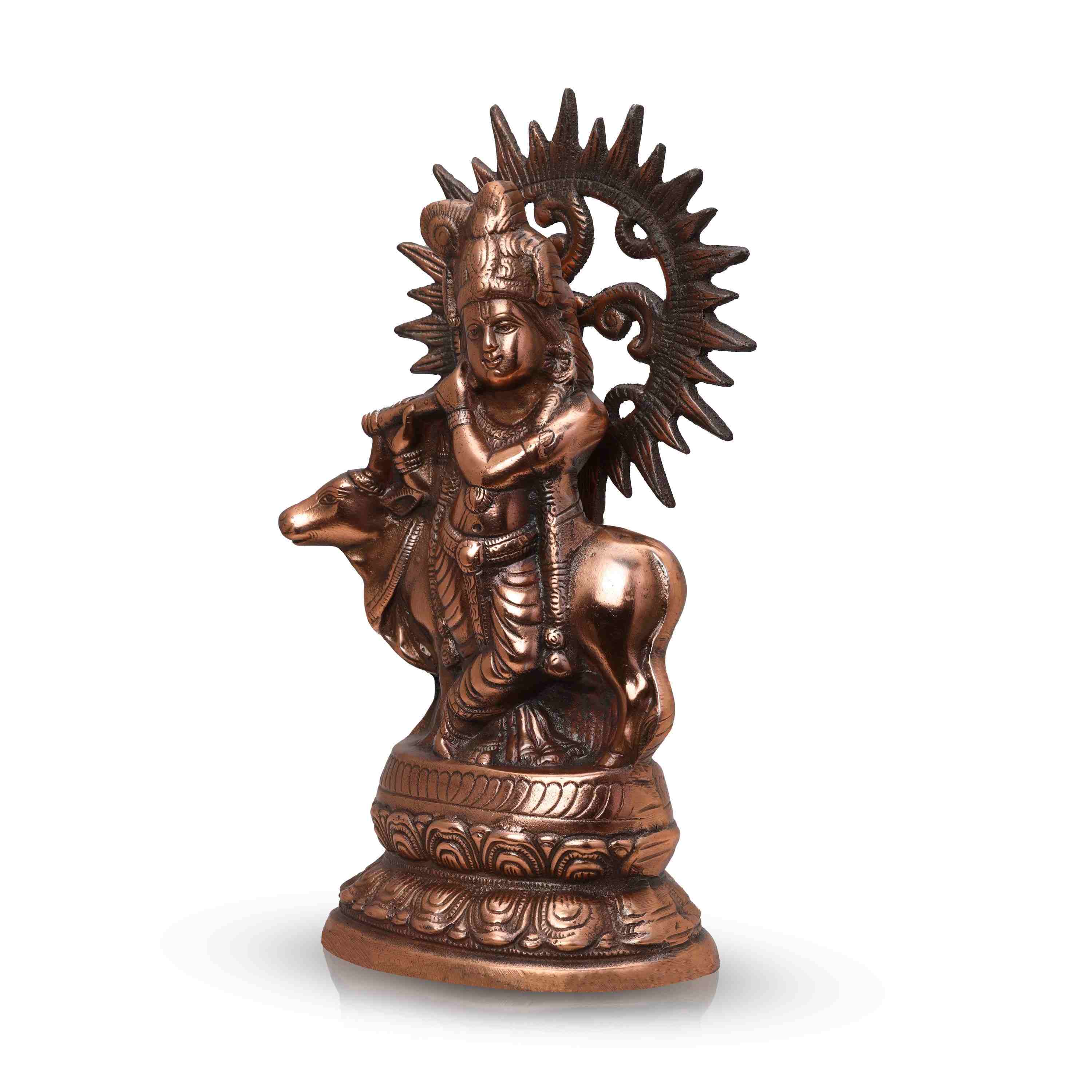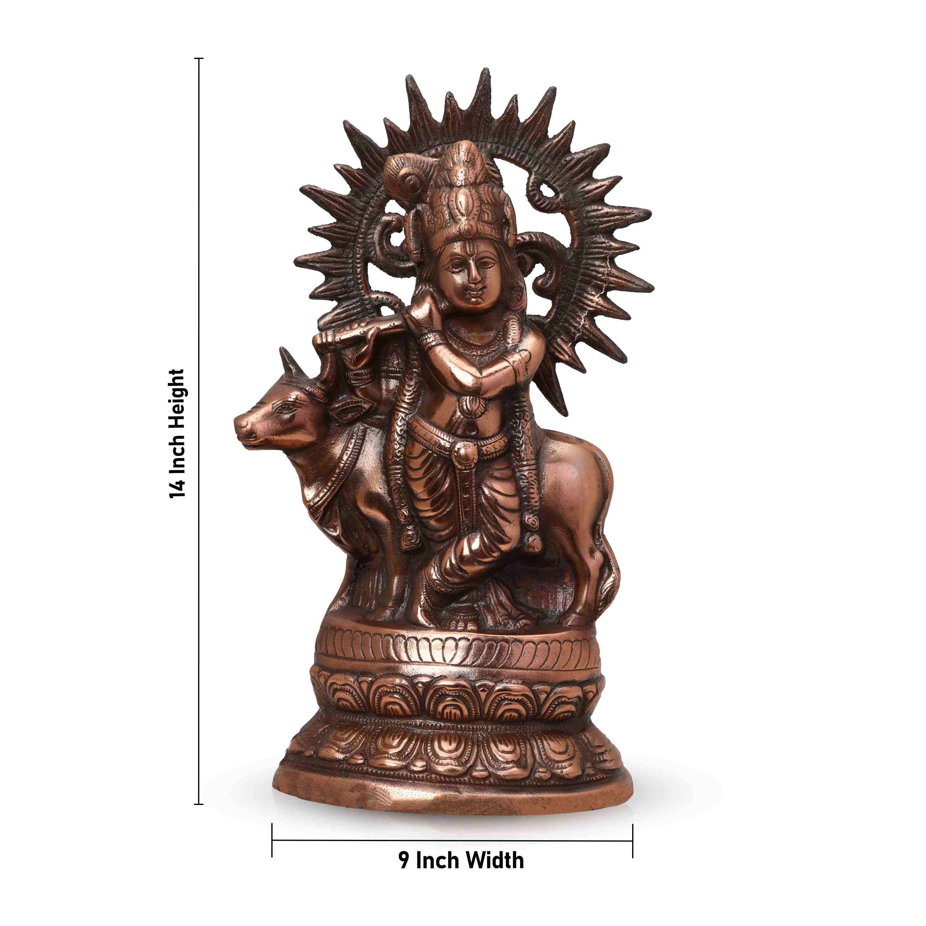 Krishnan Statue - 14 Inches | Copper Idol/ Cow Krishna Idol for Pooja/ 1.240 Kgs Approx