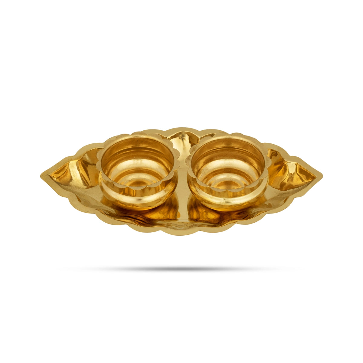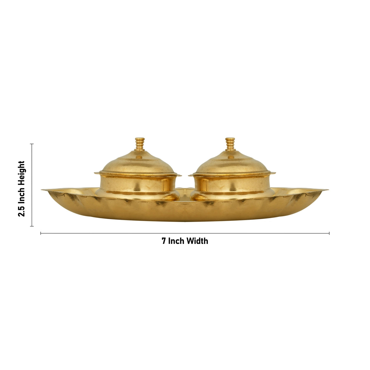 Kumkum Box With Plate - 2.5 x 7 Inches | Brass Kumkum Bharani/ 2 Sindoor Pot for Home