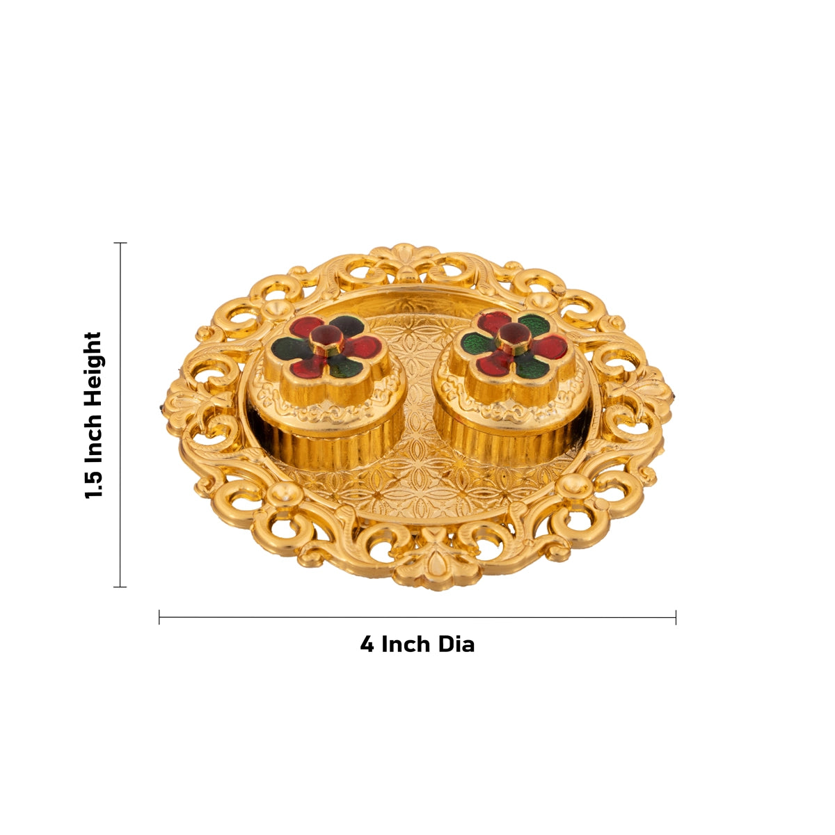 Kumkum Pot With Meenakari Plate - 1.5 x 4 Inches | Haldi Kumkum Pot/ Plastic Sindoor Pot for Pooja/ 30 Gms