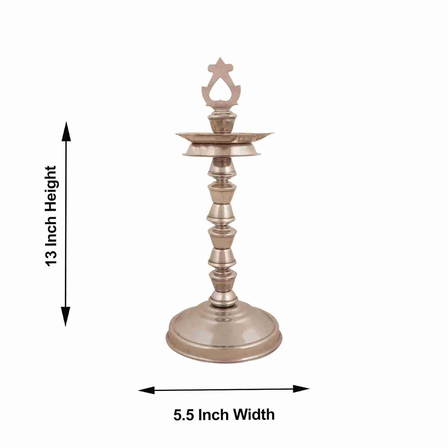 Kuthu Vilakku - 13 Inches | Stainless Steel Vilakku/ Pirai Design Lamp for Pooja/ 325 Gms Approx