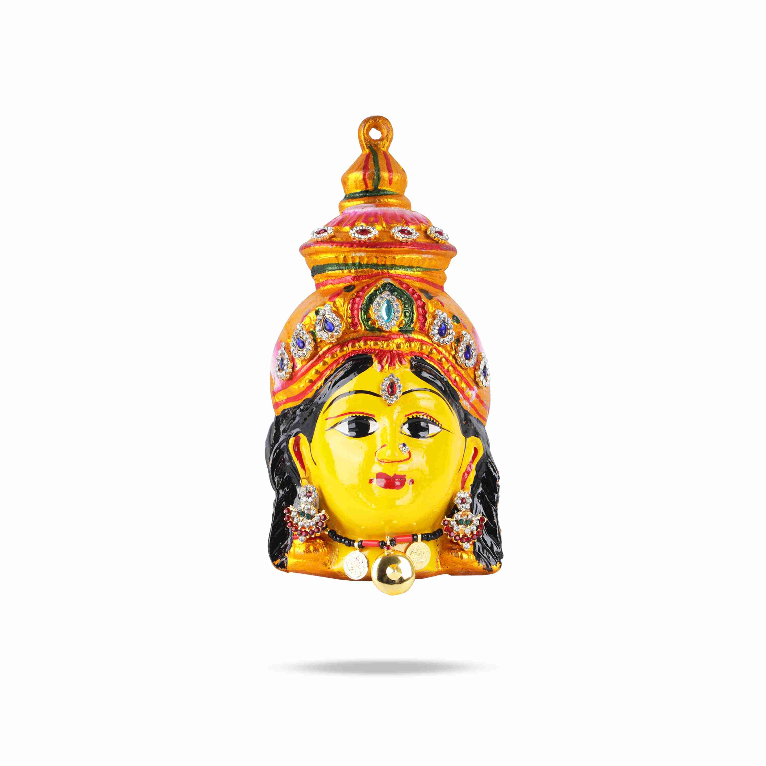 Home / Products / Head & Face Accessories / Lakshmi Face - 8 x 4 Inches | Stone Design Ammavari Face/ Yellow Varalaskhmi Face/ Amman Face for Deity Decor