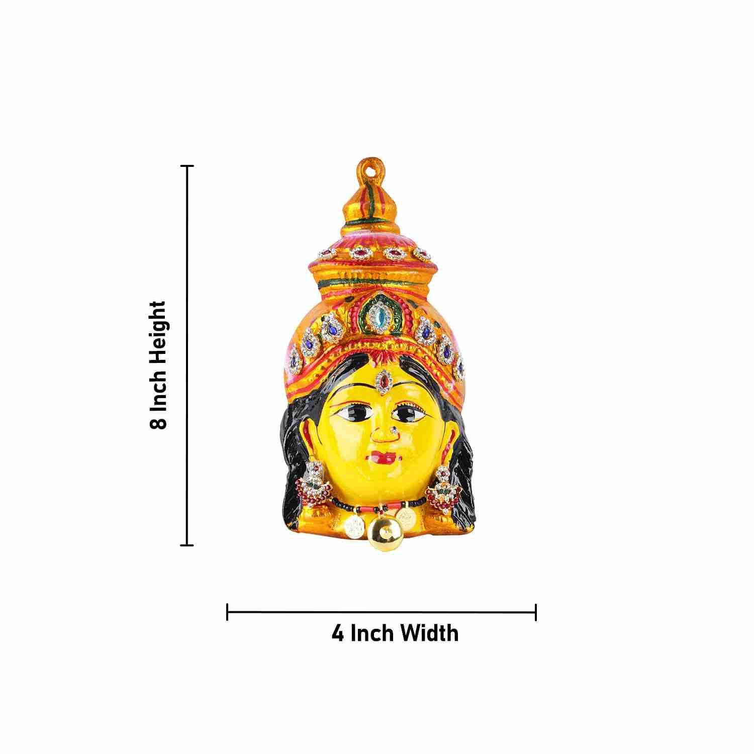 Lakshmi Face - 8 x 4 Inches | Stone Design Ammavari Face/ Yellow Varalaskhmi Face/ Amman Face for Deity Decor