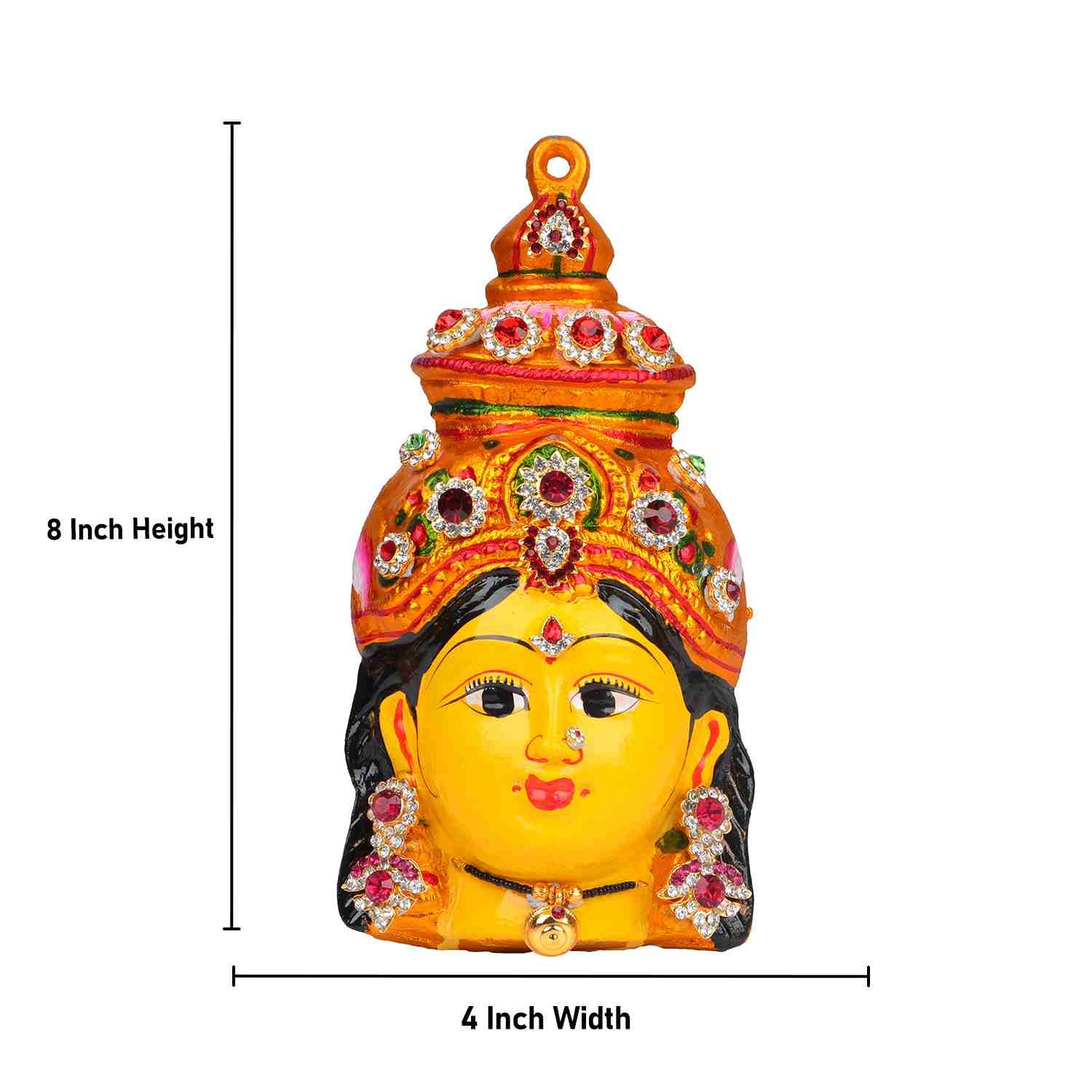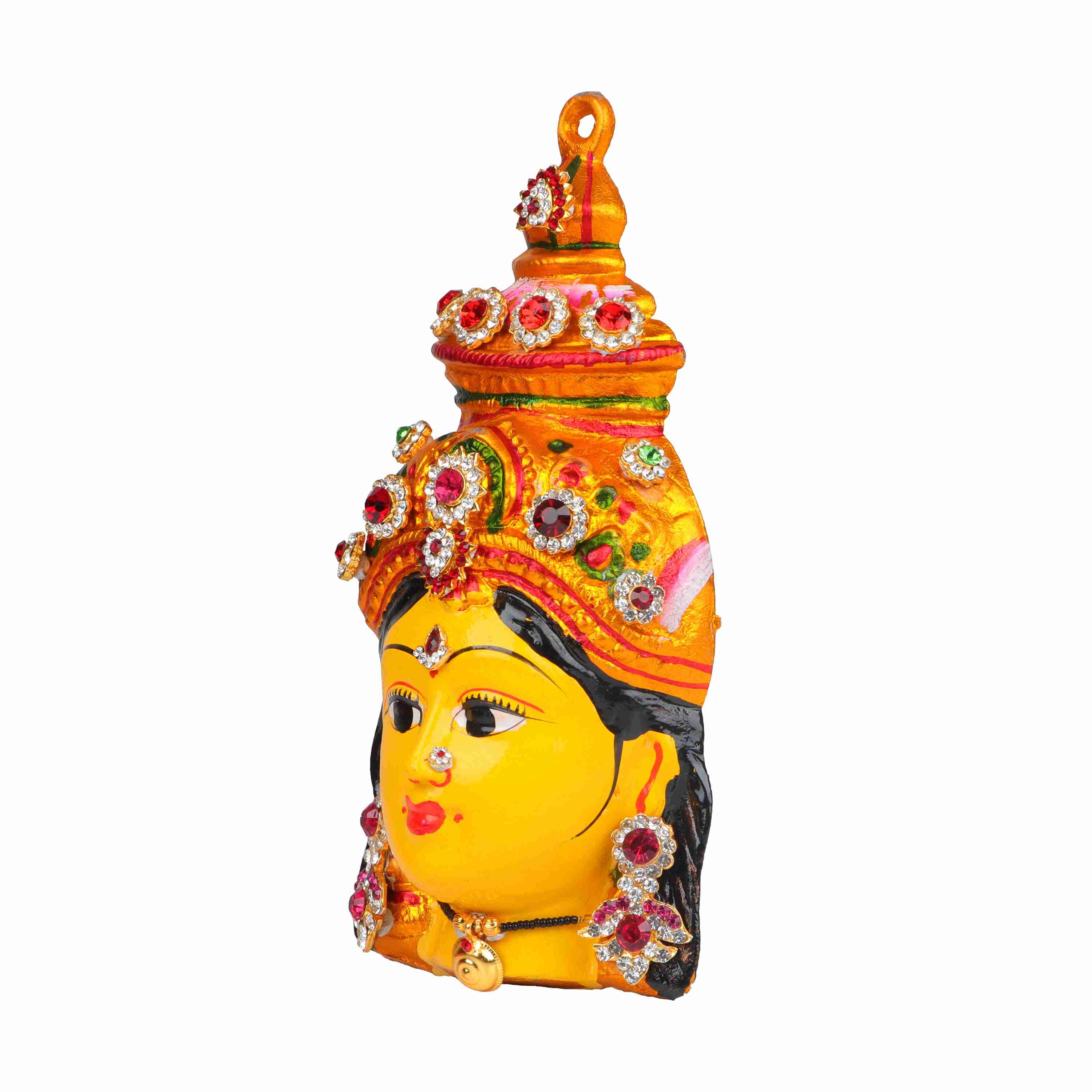 Home / Products / Head & Face Accessories / Lakshmi Face - 8 x 4 Inches | Stone Design Ammavari Face/ Yellow Varalaskhmi Face/ Amman Face for Deity Decor