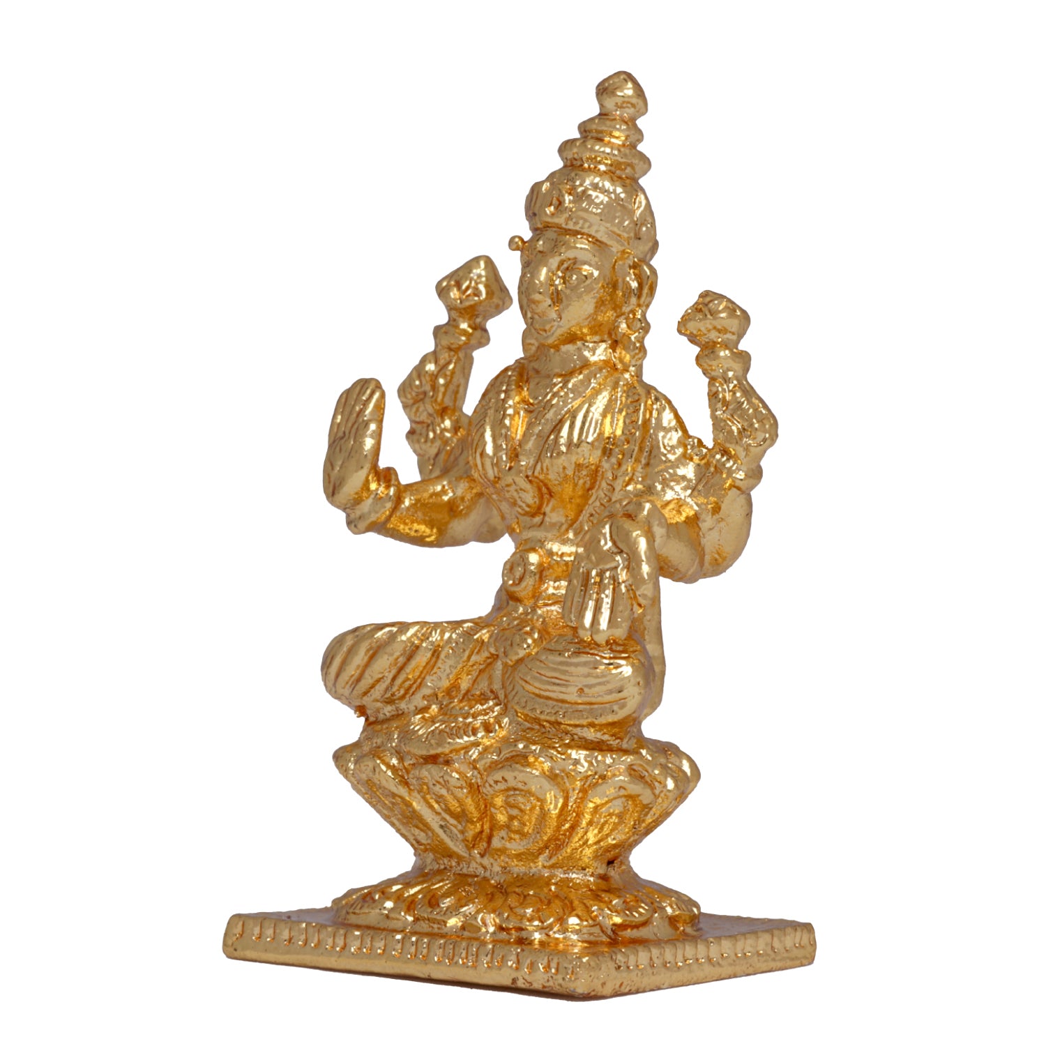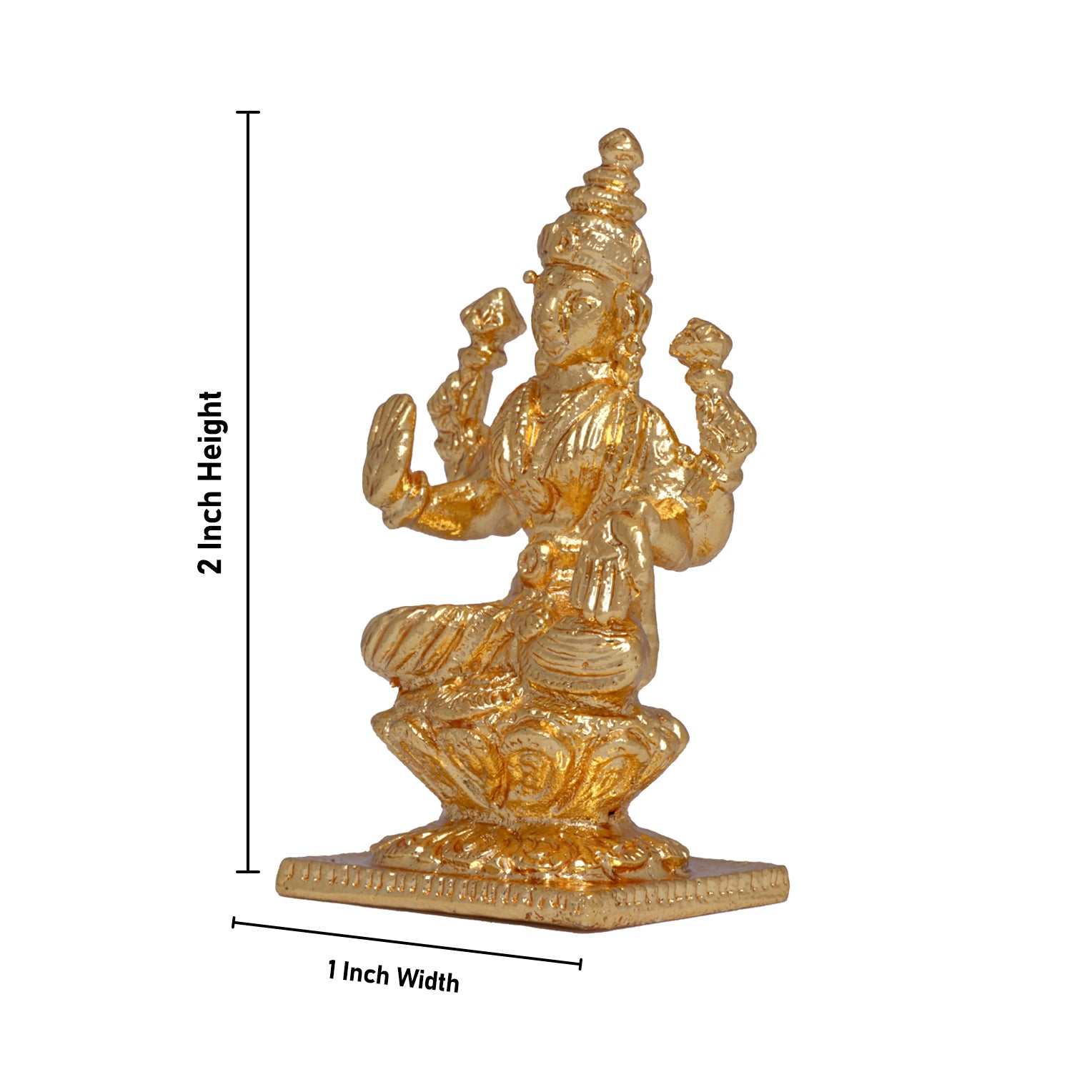 Lakshmi Idol Sitting On Lotus Base - 2 x 1 Inches | Copper Idol/ Gold Polish Laxmi Murti for Pooja