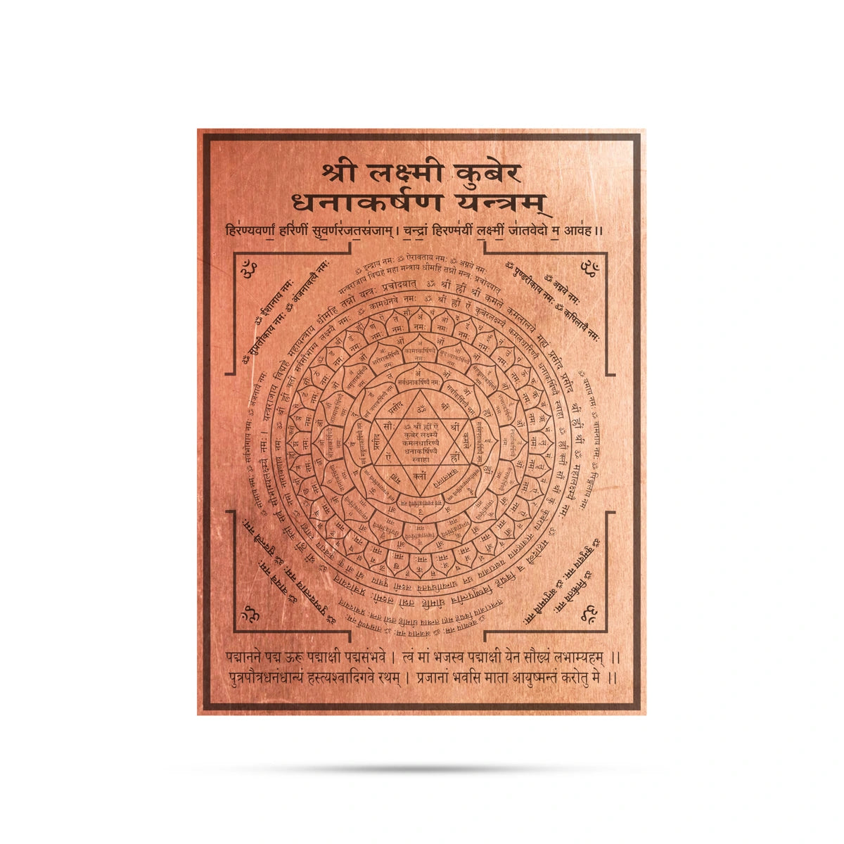 Lakshmi Kubera Danakarshana Yantram - 3 X 2.5 Inches | Sanskrit & Copper Kuber Laxmi Yantra For Pooja