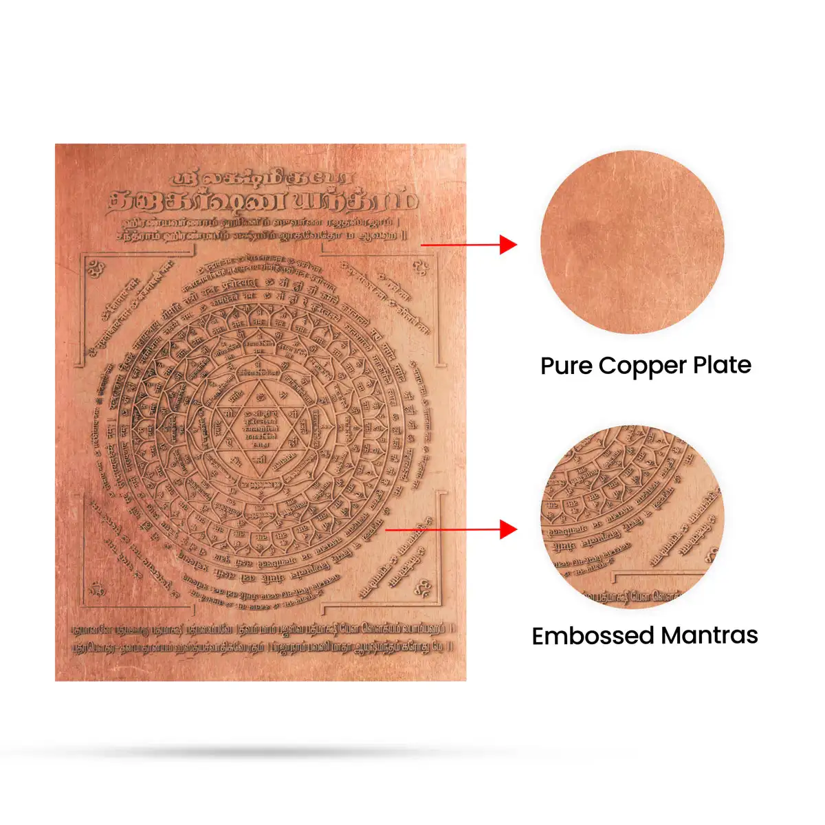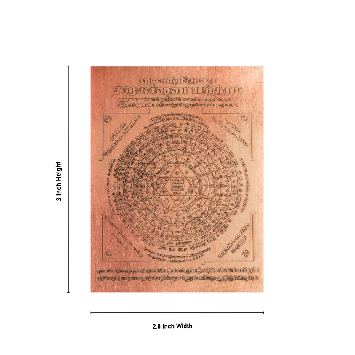 Lakshmi Kubera Yantra - 3 x 2.5 Inches | Copper Laxmi Kubera Yantra/ Tamil Laxmi Kuber Yantra for Home