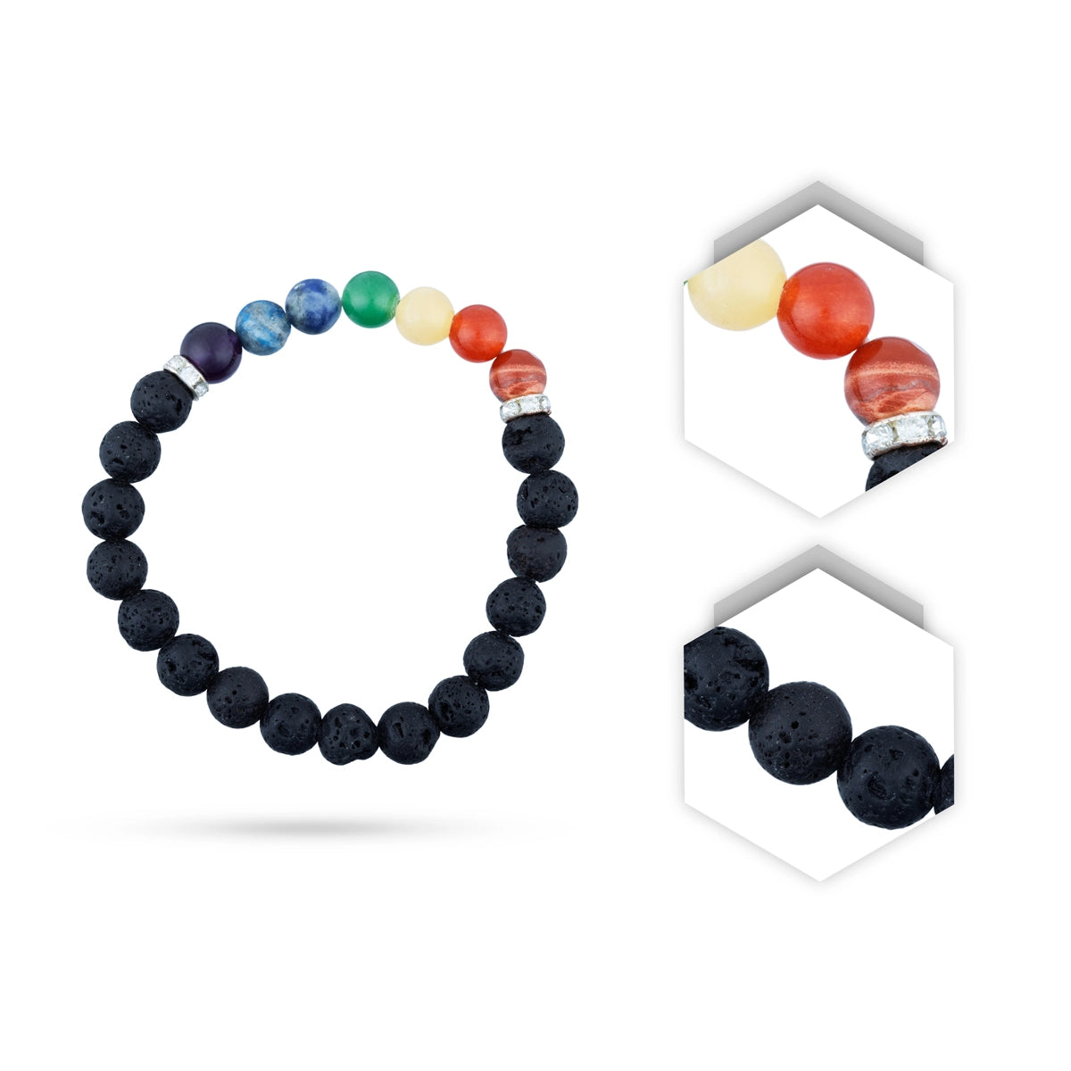 Lava 7 Chakra Bracelet - 2.5 Inches | 7 Chakra Lava Stone Bracelet/ 7 Chakra Lava Bracelet/ Hand Band/ 20 Gms