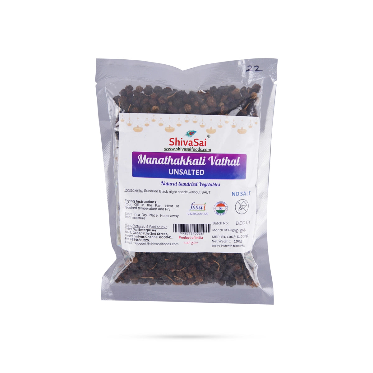 Manathakkali Vathal (Unsalted) - 100 Gms | Unsalted Natural Sundried Vegetables/ Vadagam