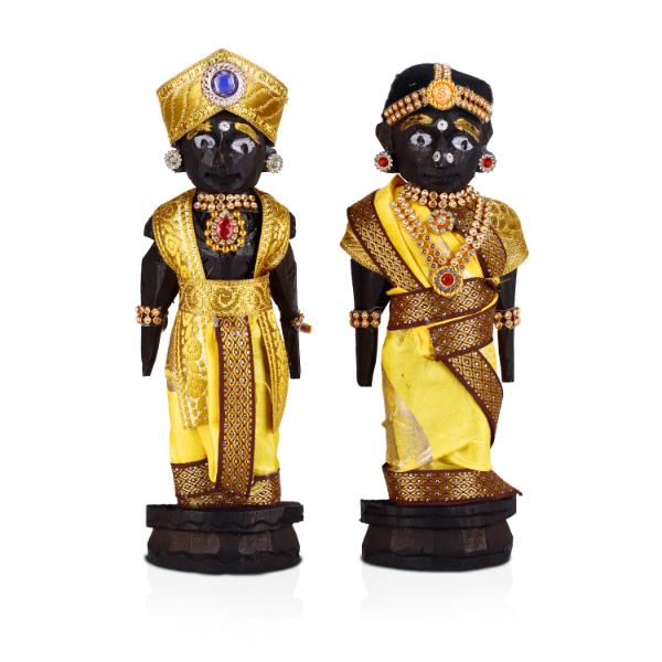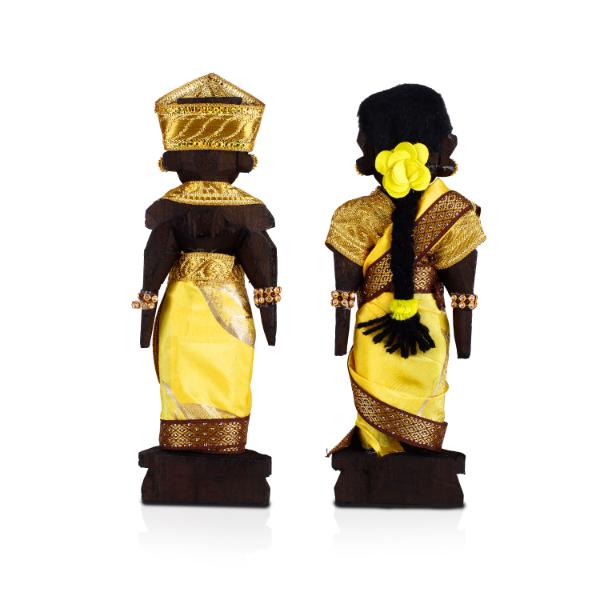 Marapachi Bommai Pair - 7 X 2.5 Inches | Wooden Statue/ Kolu Bommai/ Decorated Marapachi Doll For Golu Display
