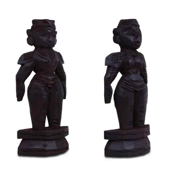 Marapachi Bommai Pair - 8 x 2.75 Inches | Wooden Statue/ Marapachi Doll for Home Decor