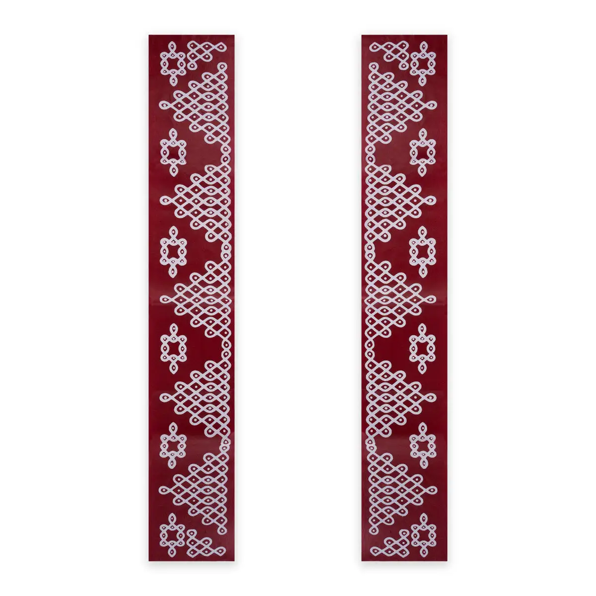 Maroon Kolam Sticker Set - 29.5 x 4 Inches | 4 Pcs/ Rangoli Sticker/ Muggu Sticker for Home Decor