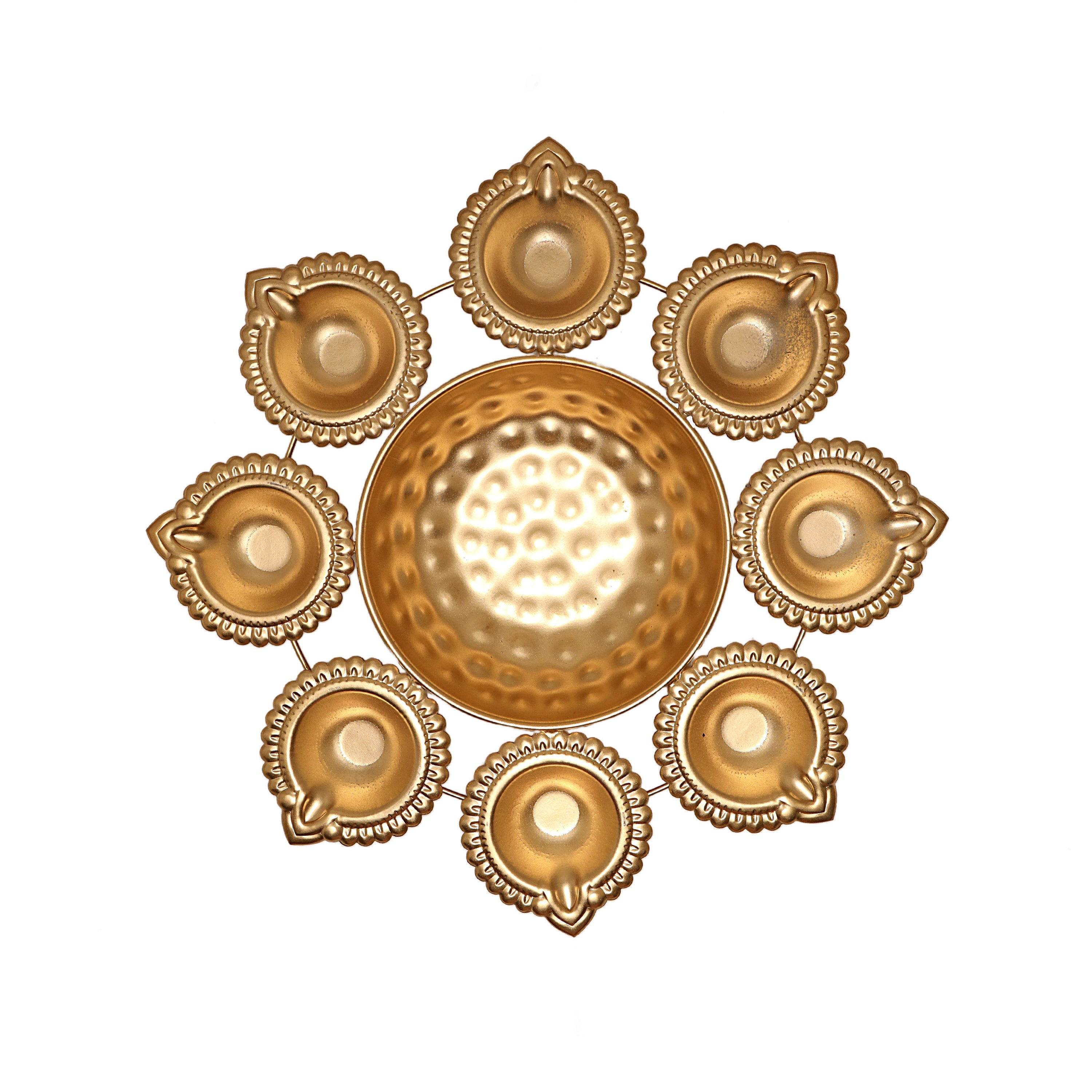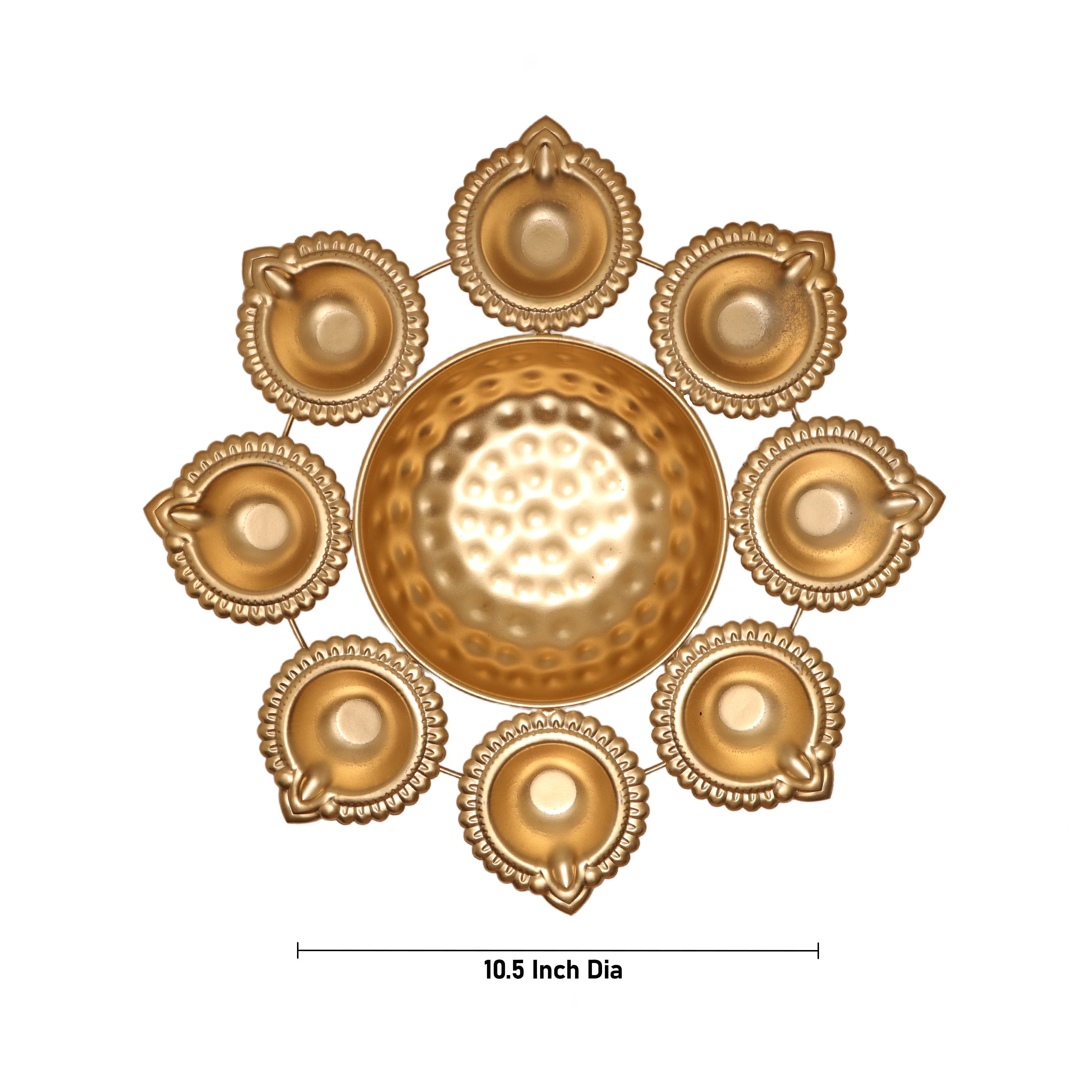 Metal Flower Pot - 1.5 x 10.5 Inches | Brass Polish Urli/ 9 Diya with Uruli for Pooja/ 270 Gms Approx