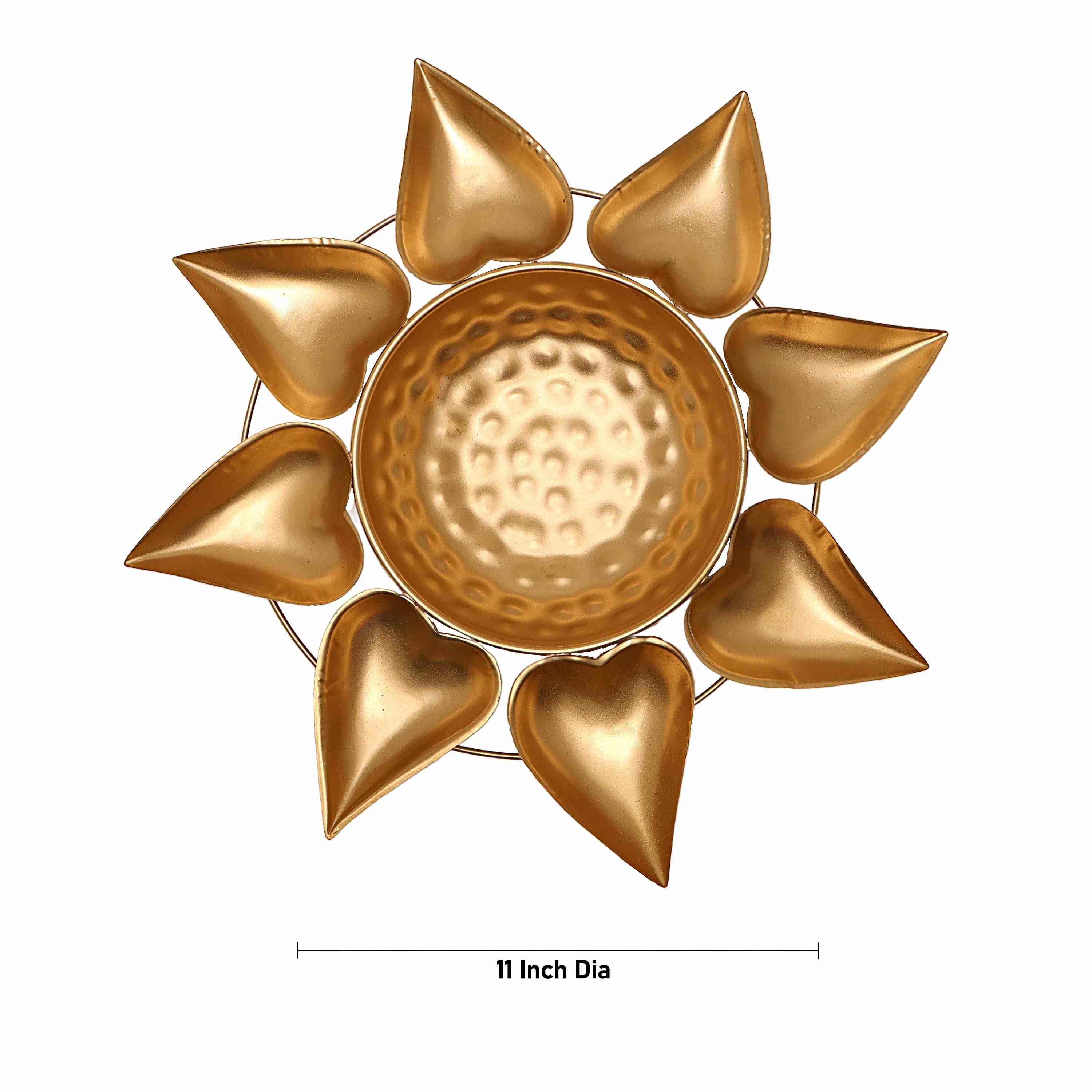 Metal Flower Pot - 1.5 x 11 Inches | Brass Polish Urli/ Heart Design Uruli for Pooja/ 190 Gms Approx