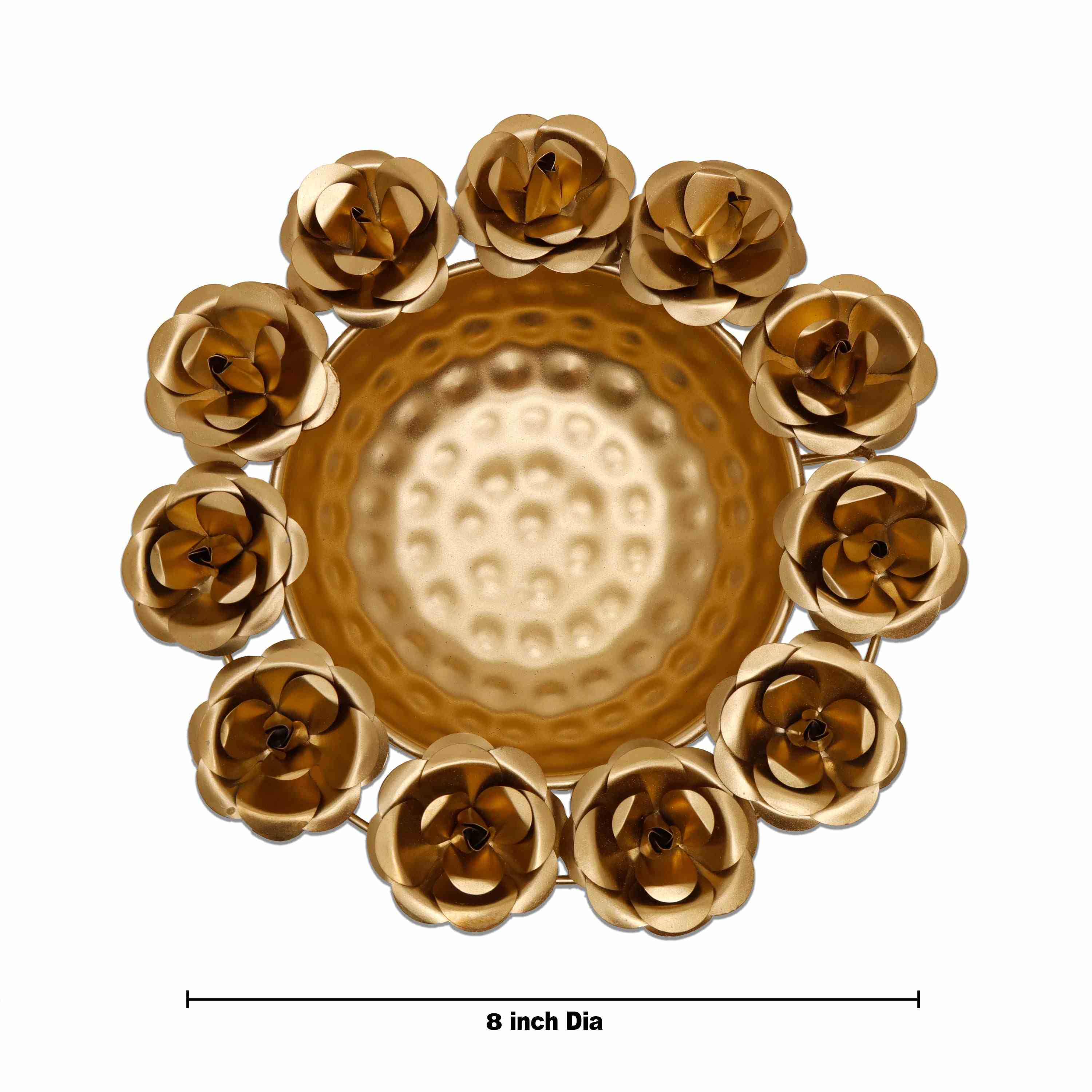 Metal Flower Pot - 2 x 8 Inches | Brass Polish Urli/ Rose Design Uruli for Pooja/ 195 Gms Approx