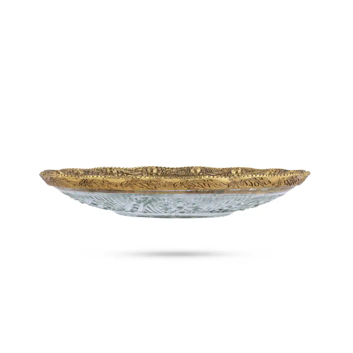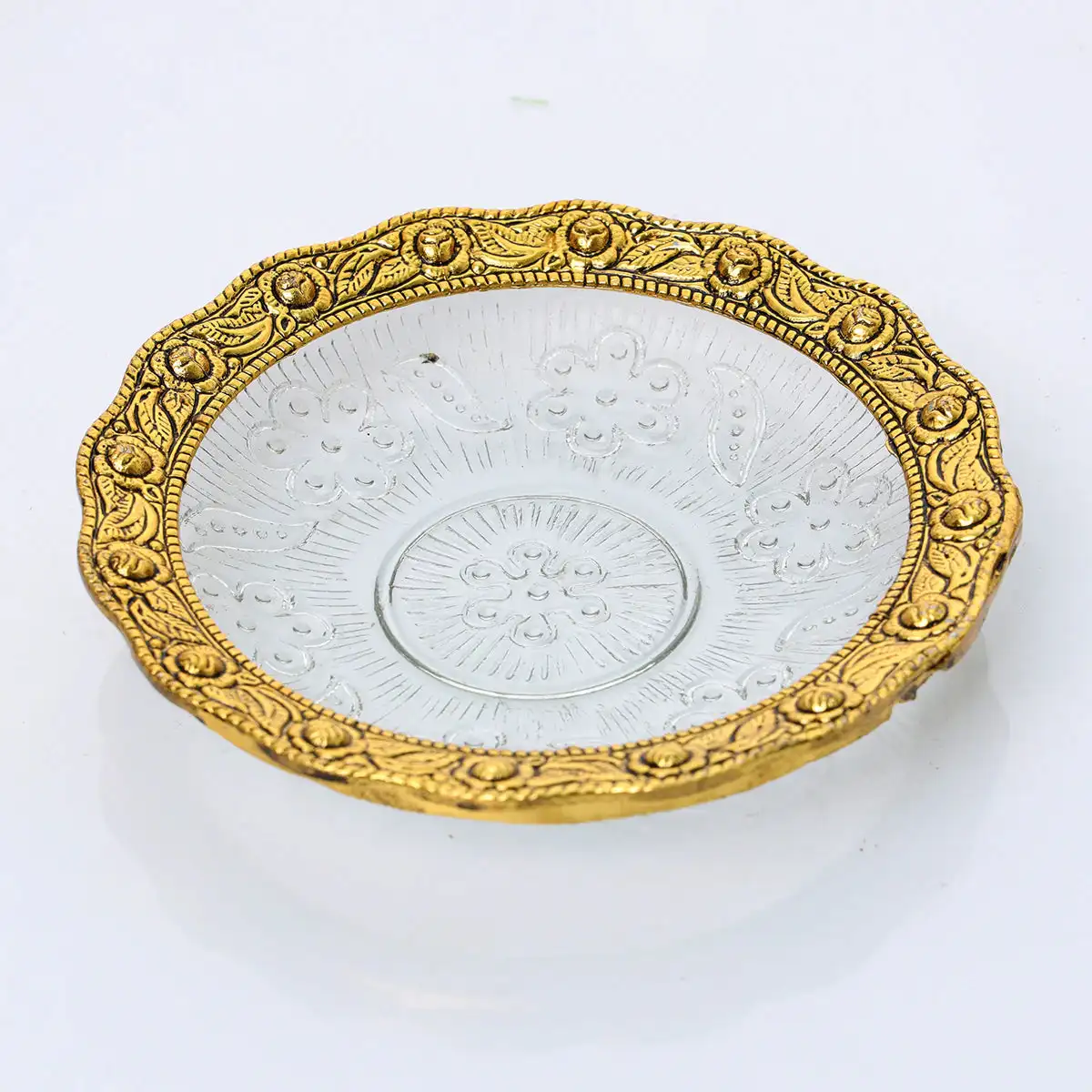 Home / Products / Table Stand Accessories / Metal Tortoise Statue With Glass Plate - 1 x 5 Inches | Gold Antique Polish Tortoise Idol With Plate for Home